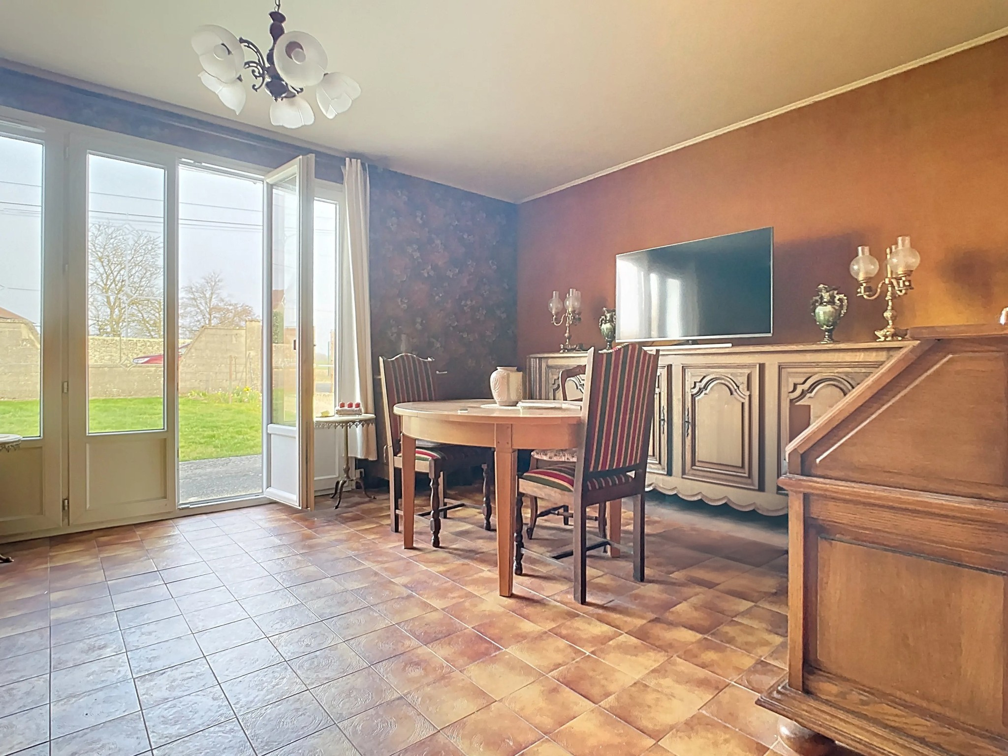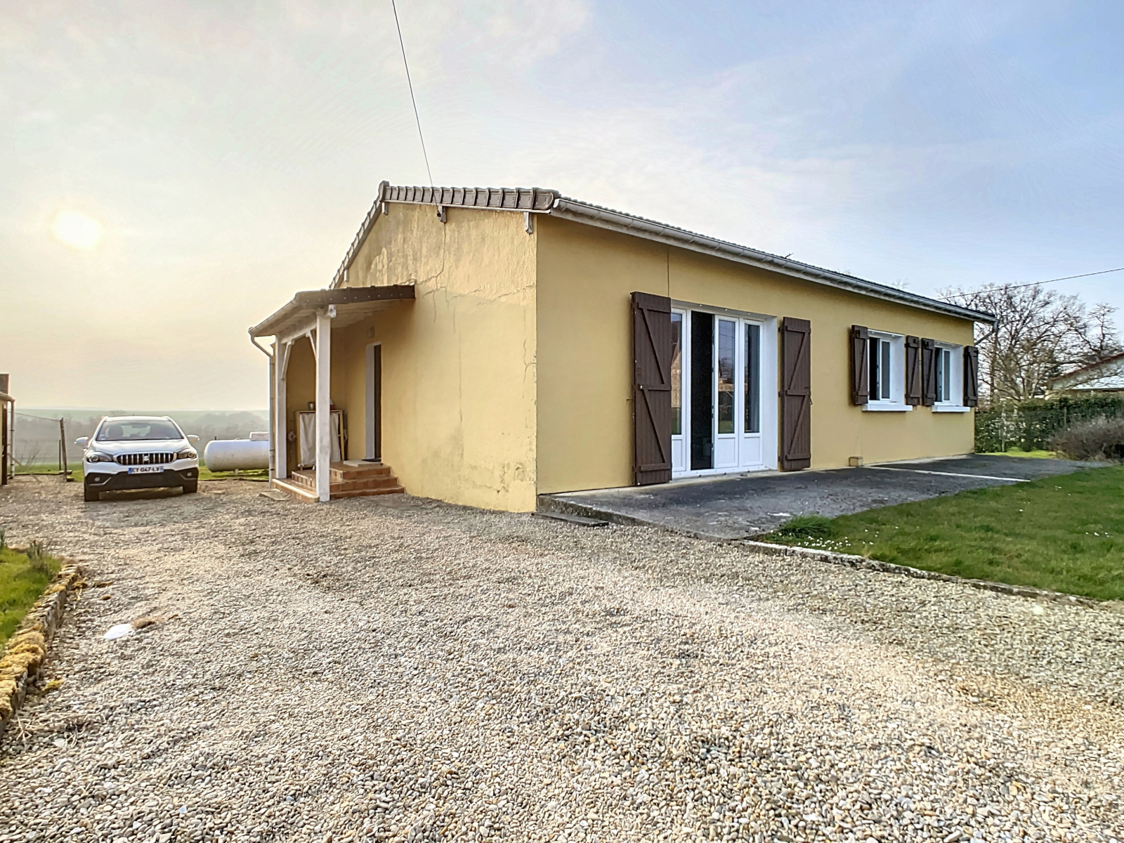 Prestations: chauffage central gaz citerne, double vitrage PVC avec volets à la française, assainissement par tout à l'égout, double exposition est/ouest, transports scolaire sur place.