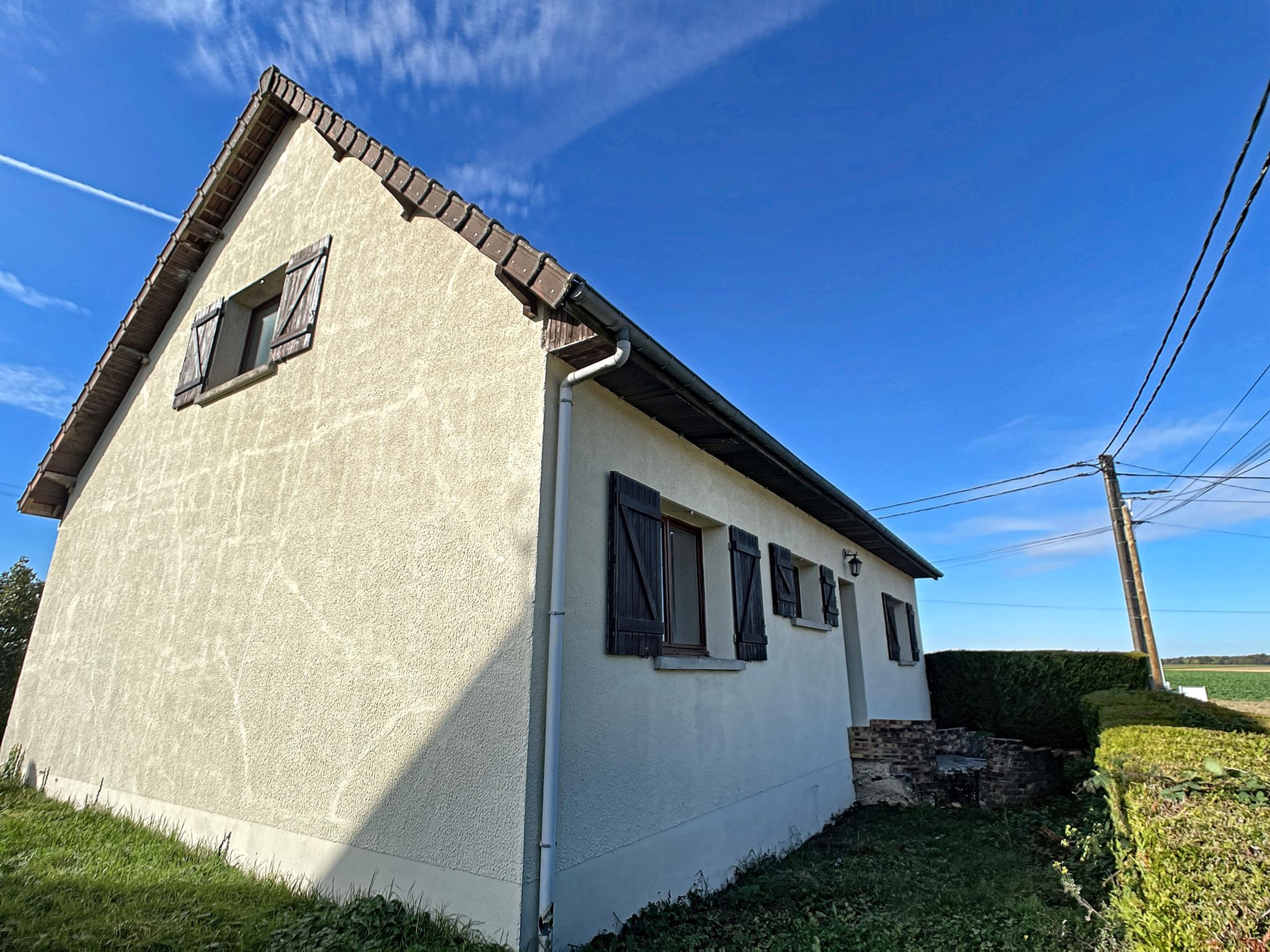 A moins de 30 minutes d' EPERNAY, 18 mn de Montmiraill. Pavillon comprenant: entrée sur couloir, salon séjour avec cheminée insert, cuisine, deux chambres, salle de bains, toilettes. A l'étage: trois chambres, pièce libre (possibilité salle d'eau et toilettes (évacuation et arrivées d''eau en attente)). Sous-sol total compartimenté (garage 2 à 3 VL, cellier, buanderie). Le tout édifié sur un terrain clos de grillage de 434 m² environ. Prestations: Construction 1985 en béton cellulaire, sous-sol en parpaings, chauffage électrique, cheminée insert, assainissement par tout à l'égout, double exposition NORD-EST/SUD-OUEST, petites commodités à pied, ramassage scolaire.