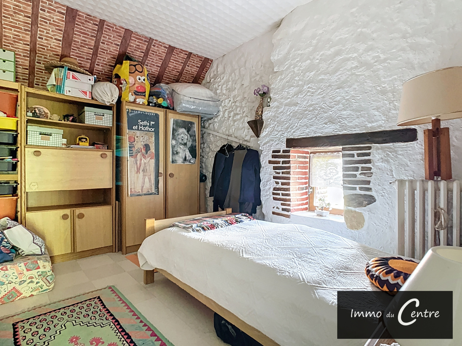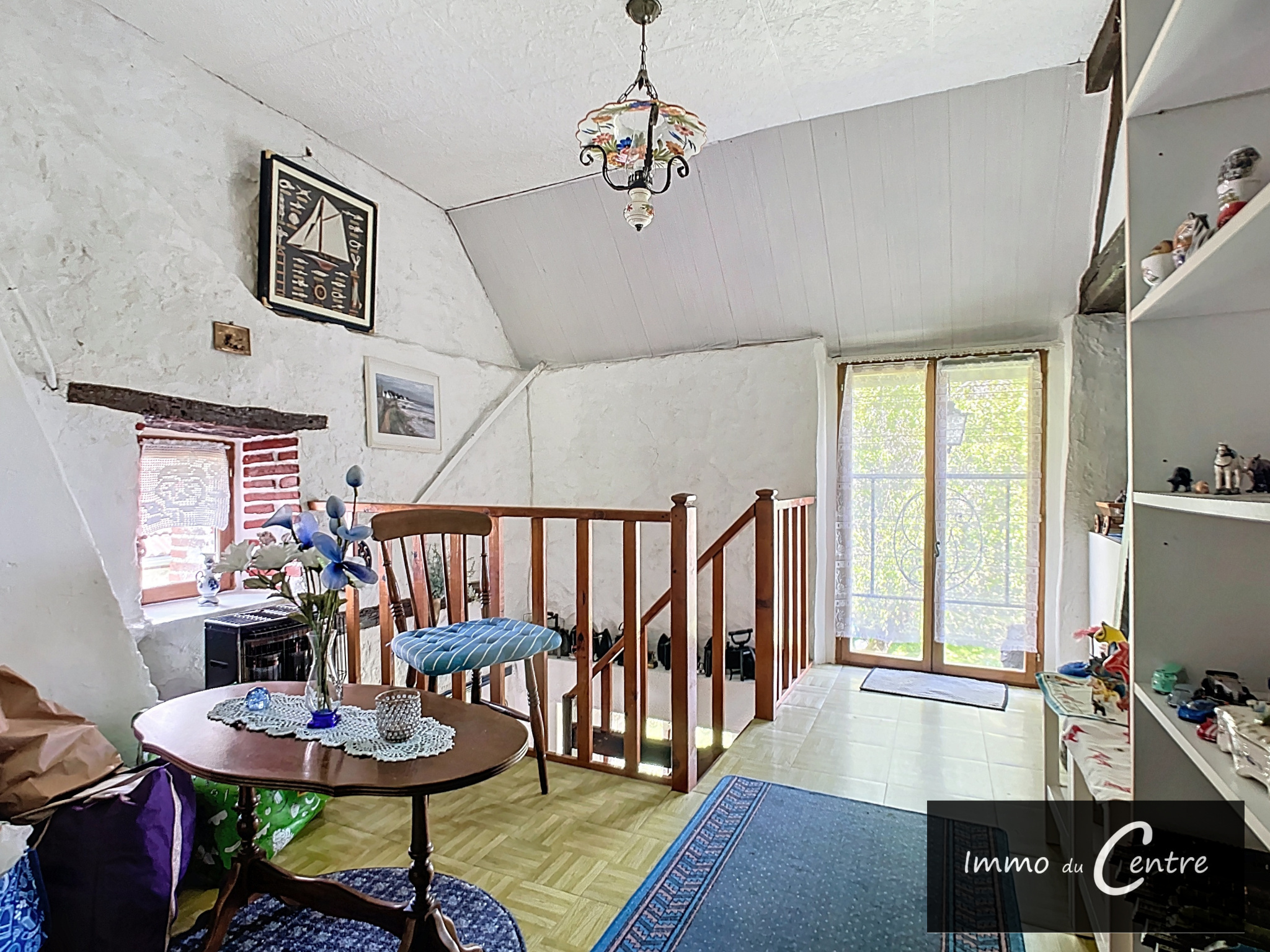 Maison de pays comprenant sur sa première partie : entrée sur cuisine dinatoire avec cheminée ouverte, salon, salle de bains, toilettes, une pièce à usage de chambre. A l'étage palier distribuant deux chambres, cabinet de toilettes (transformable en salle d'eau avec toilettes) et Grenier au dessus. Non attenante et en annexe : une seconde partie de type dépendance aménagée comprenant pièce de vie avec coin cuisine, salon ou chambre, débarras, salle d'eau (non raccordée à l'assainissement) et Grenier au dessus avec accès par l'extérieur. Garage, bucher sur une parcelle arborée de 1 375 m².