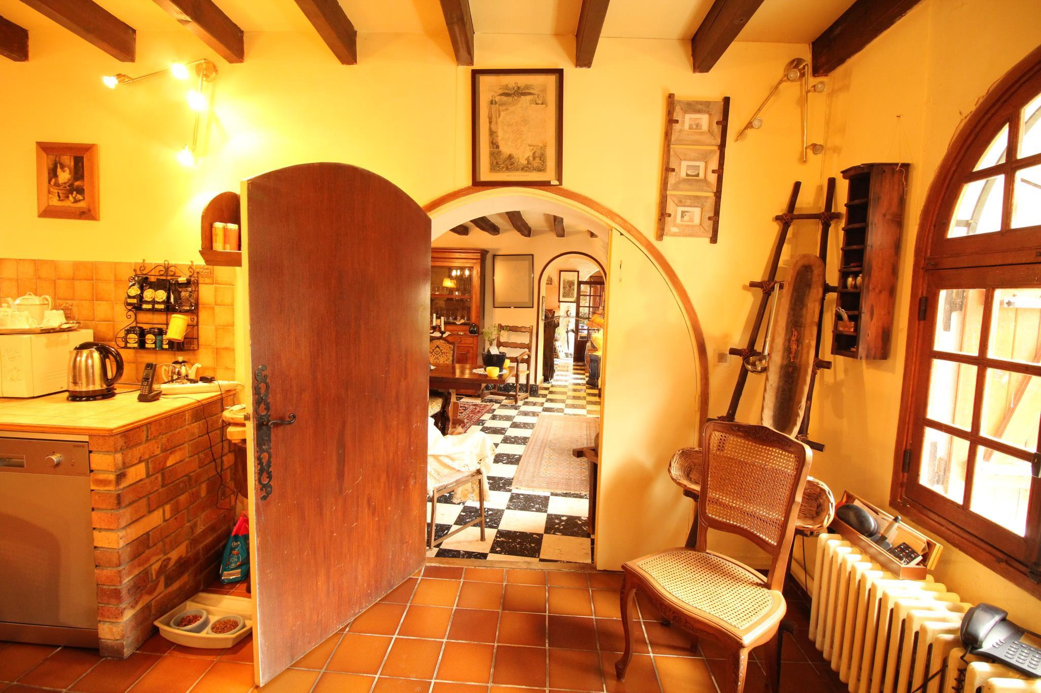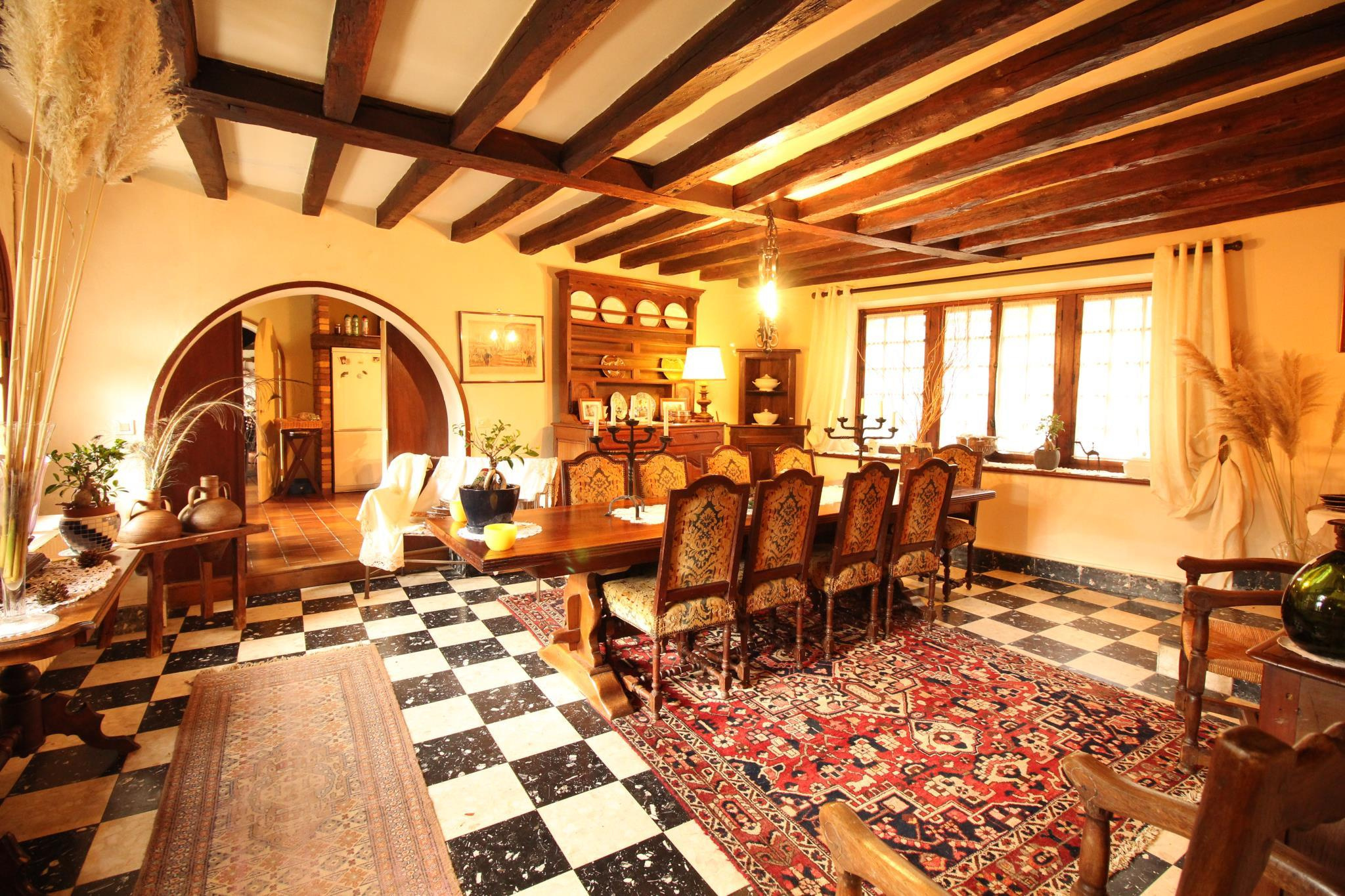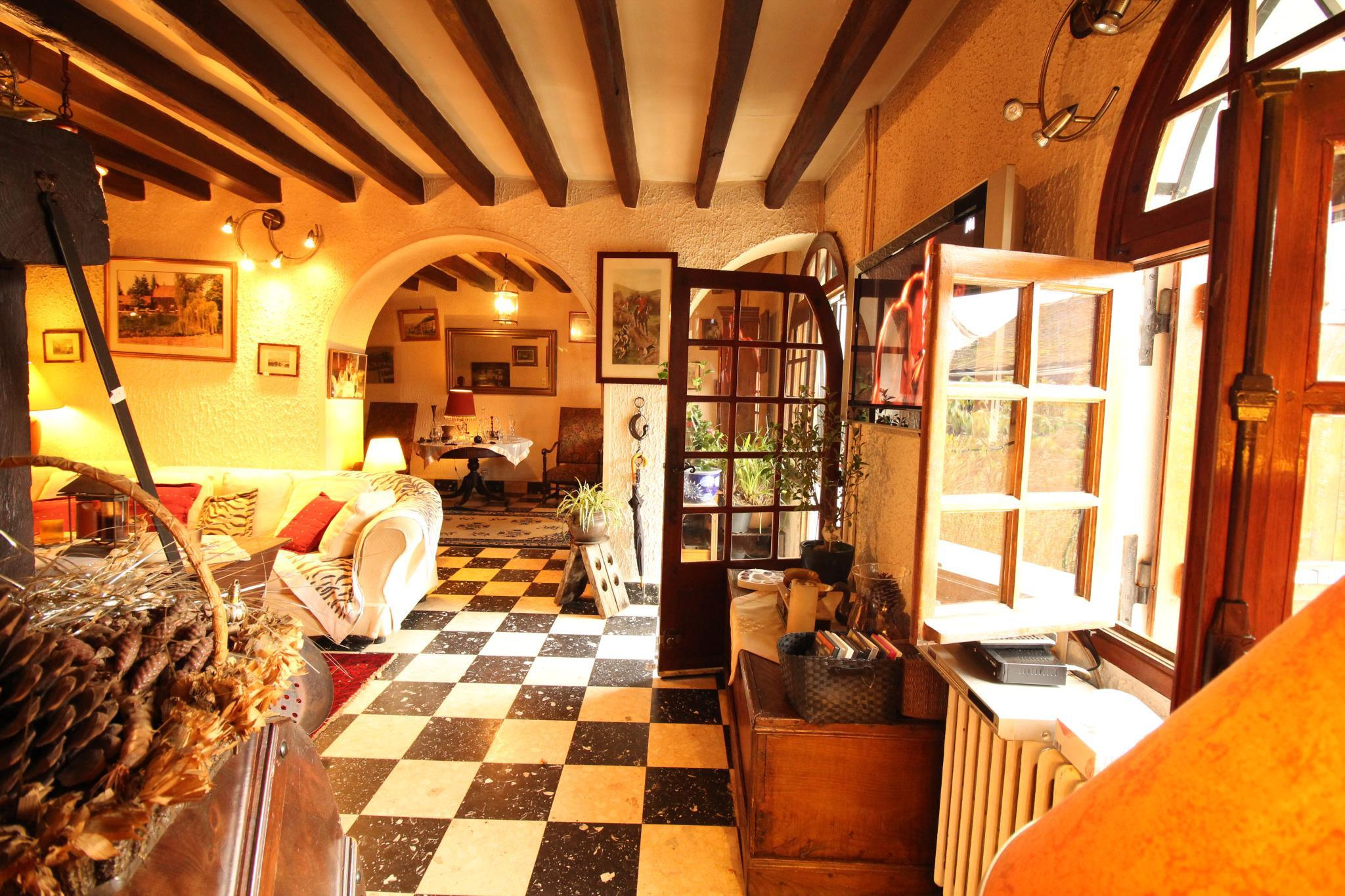 Située à 10 min de MONTMIRAIL et de ses commodités, dans un village de caractère, maison de pays comprenant entrée sur salon avec cheminée ouverte et four à pains, séjour, cuisine aménagée, jardin d'hiver, salle d'eau avec toilettes, cellier chaufferie, à l'étage: 5 chambres, salle de bains avec toilettes, et combles aménageables au-dessus. Bûcher, terrasse, le tout sur un terrain clos de grillage de 1489 m² environ. Prestations: gros ?uvre en bon état, tuiles plates de pays, chaudière à fioul de 03/2016 de type ATLANTIC Optima avec production d'eau chaude, exposition SUD/OUEST
