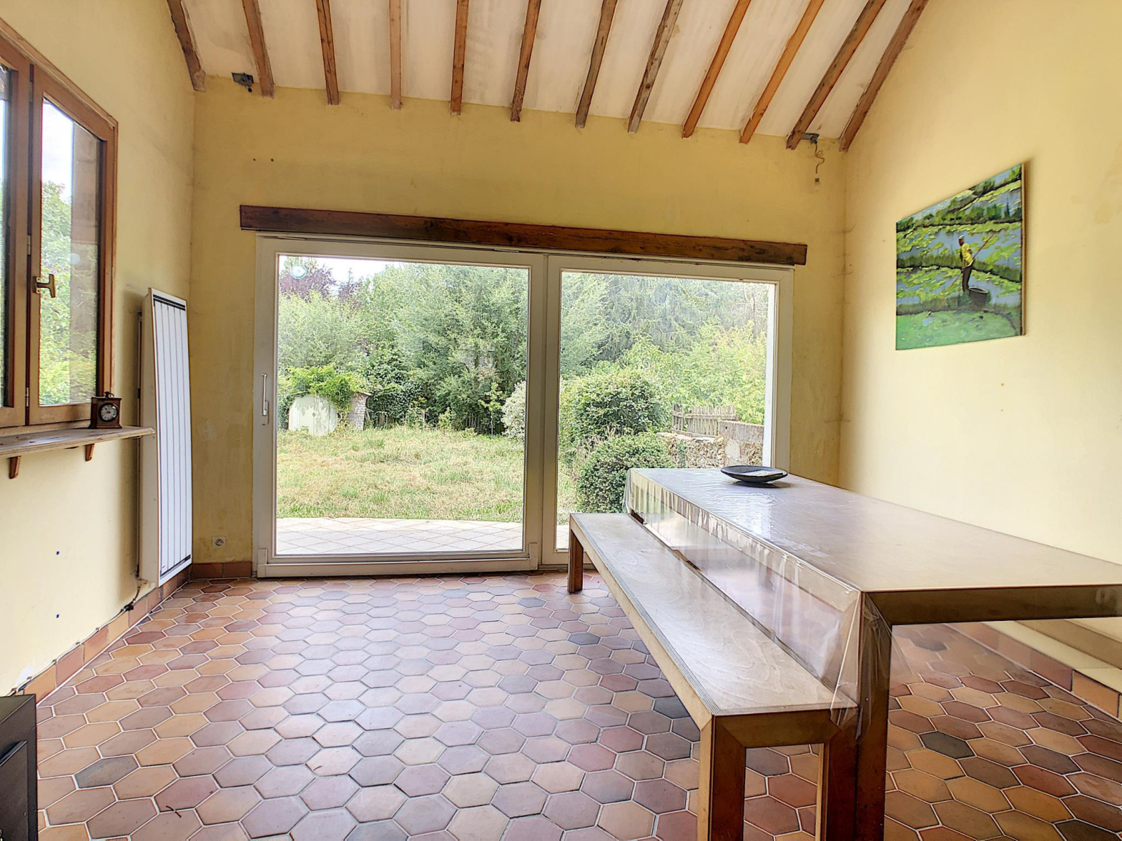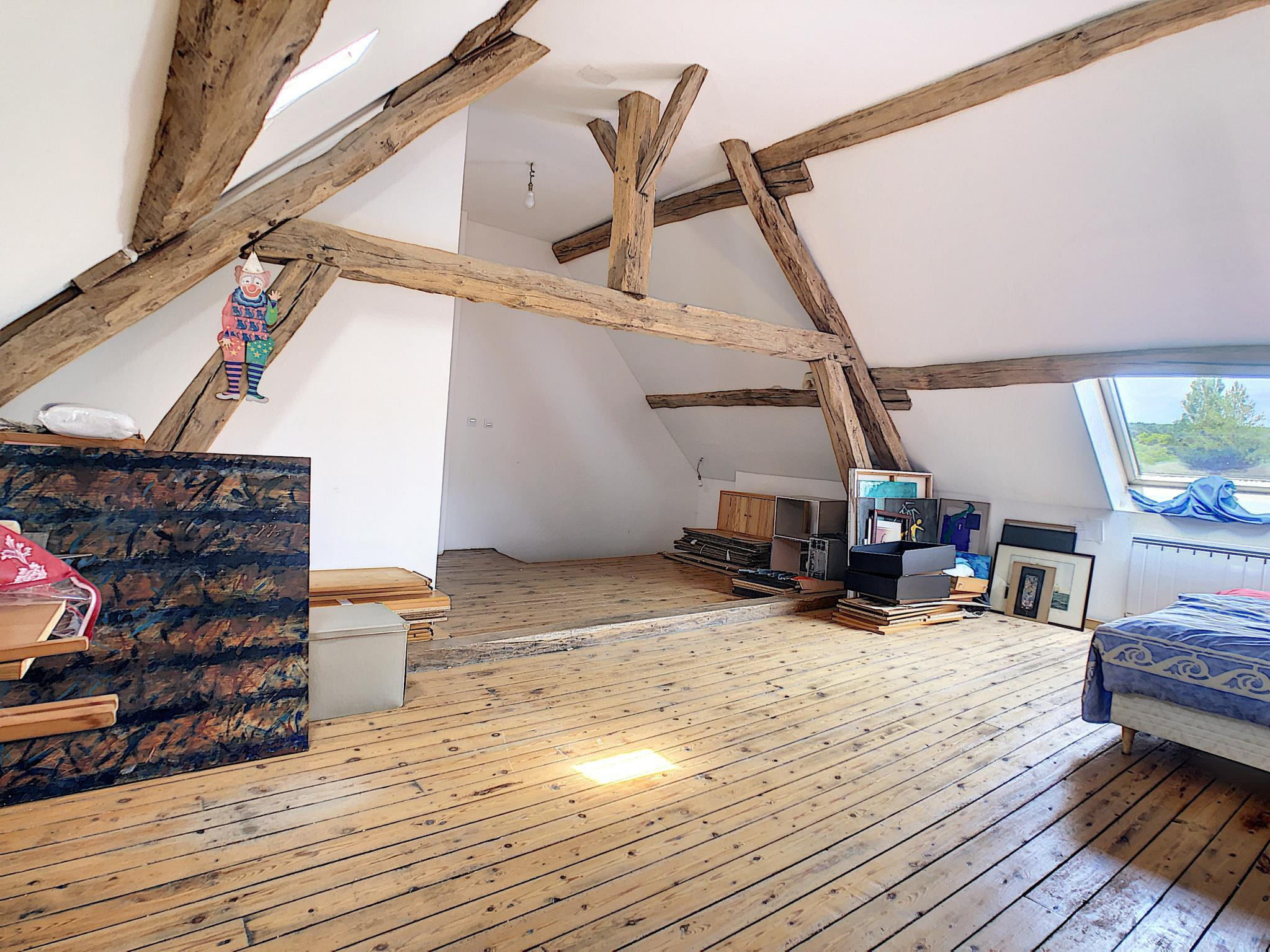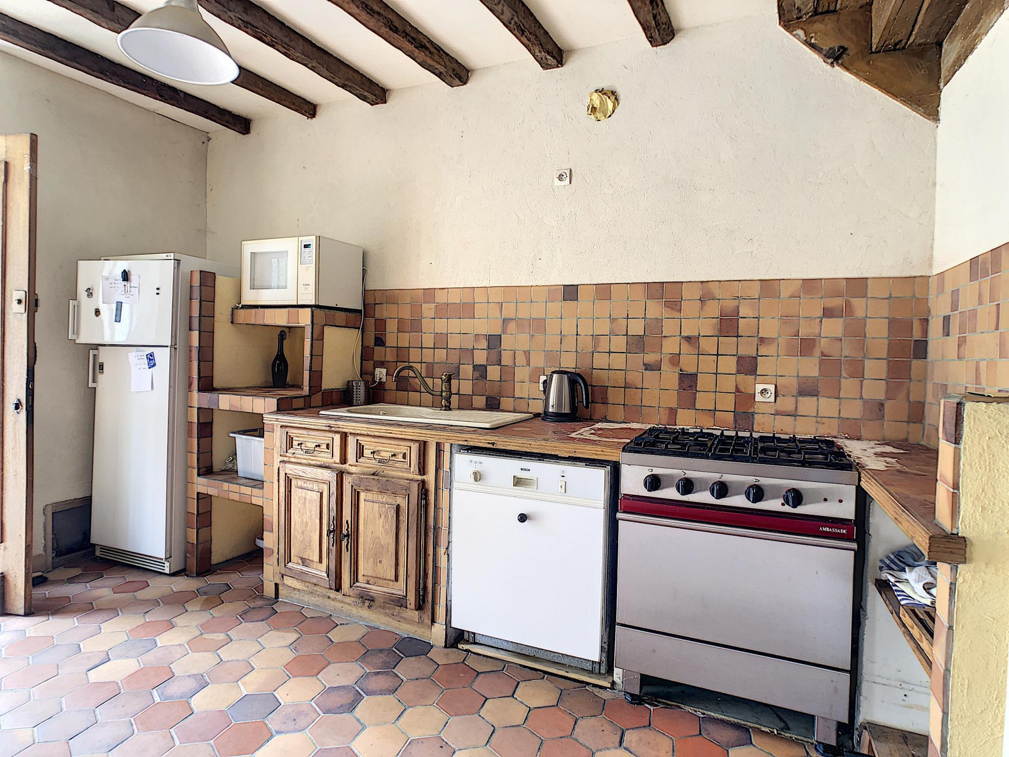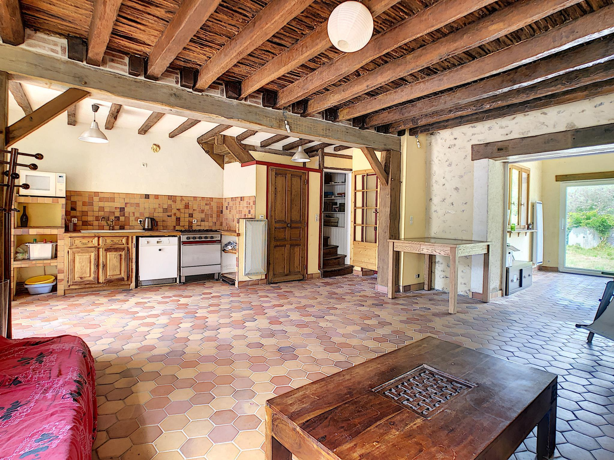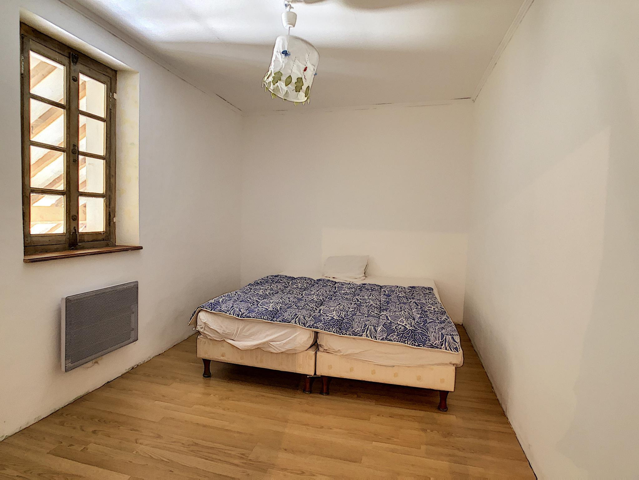 Maison de village comprenant entrée sur séjour avec cuisine ouverte, salon, à l'étage: pièce palière desservant deux chambres, salle d'eau avec toilettes, au second: troisième chambre avec cagibi (possibilité salle d'eau) en annexe: terrasse, jardin, le tout sur une parcelle de 420 m² environ. Prestations: installation intérieure électrique récente, double exposition nord-sud, transports scolaire sur place.