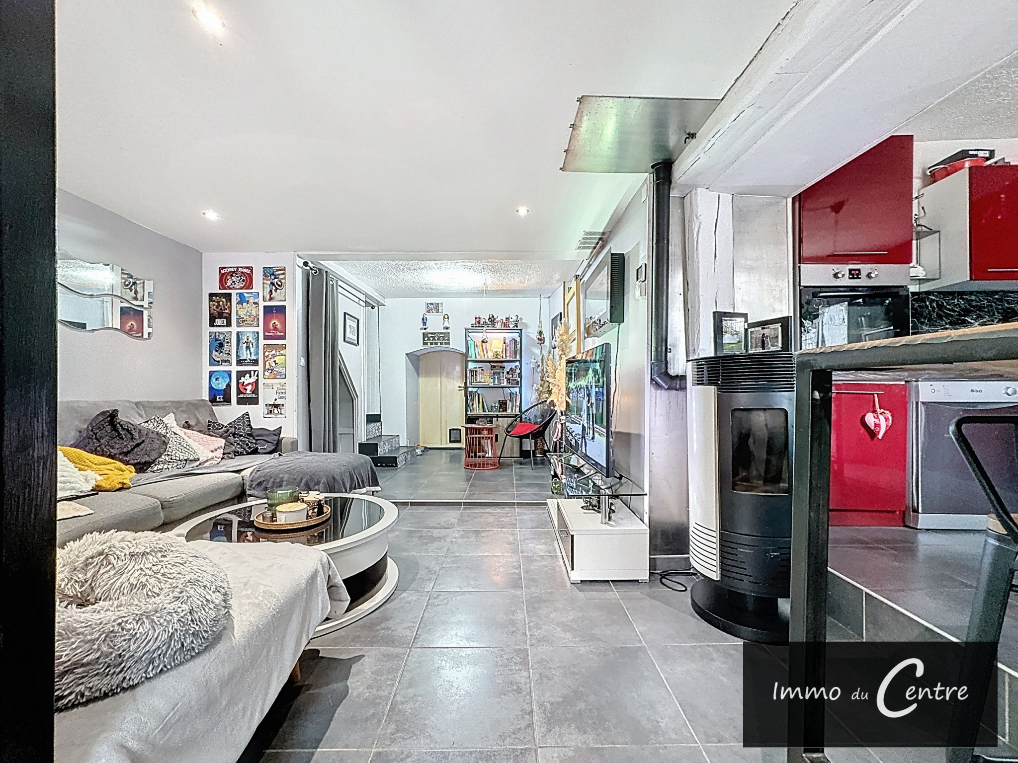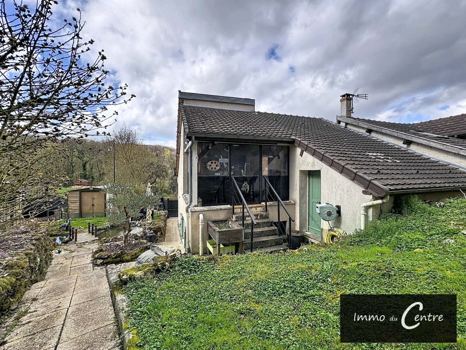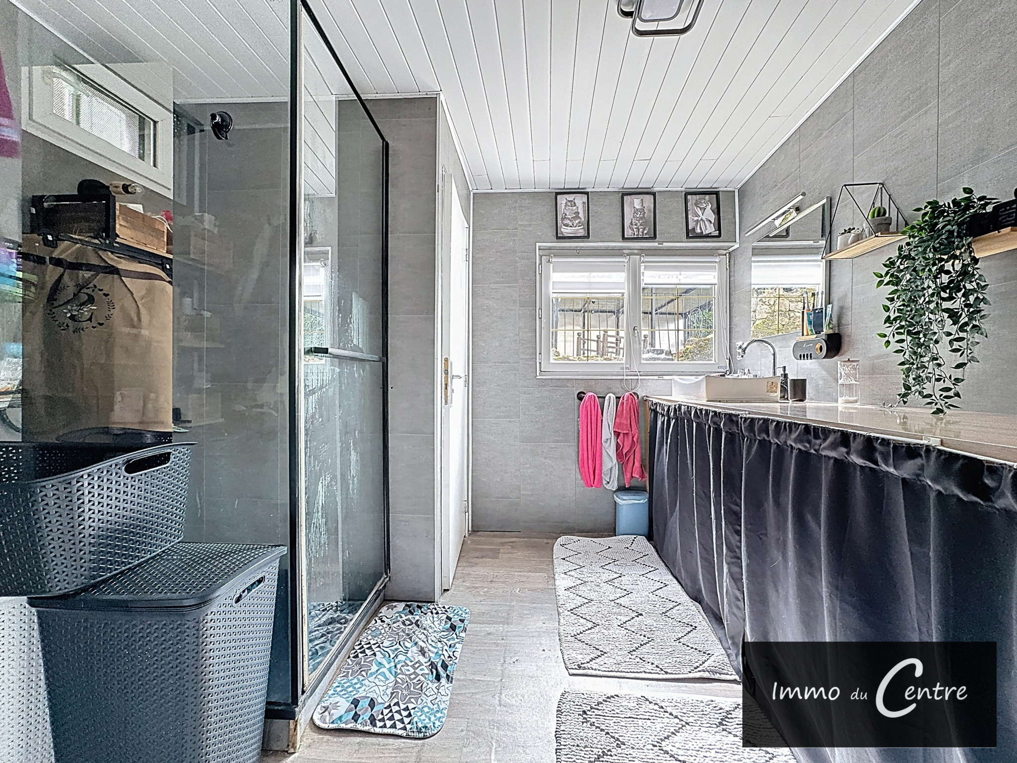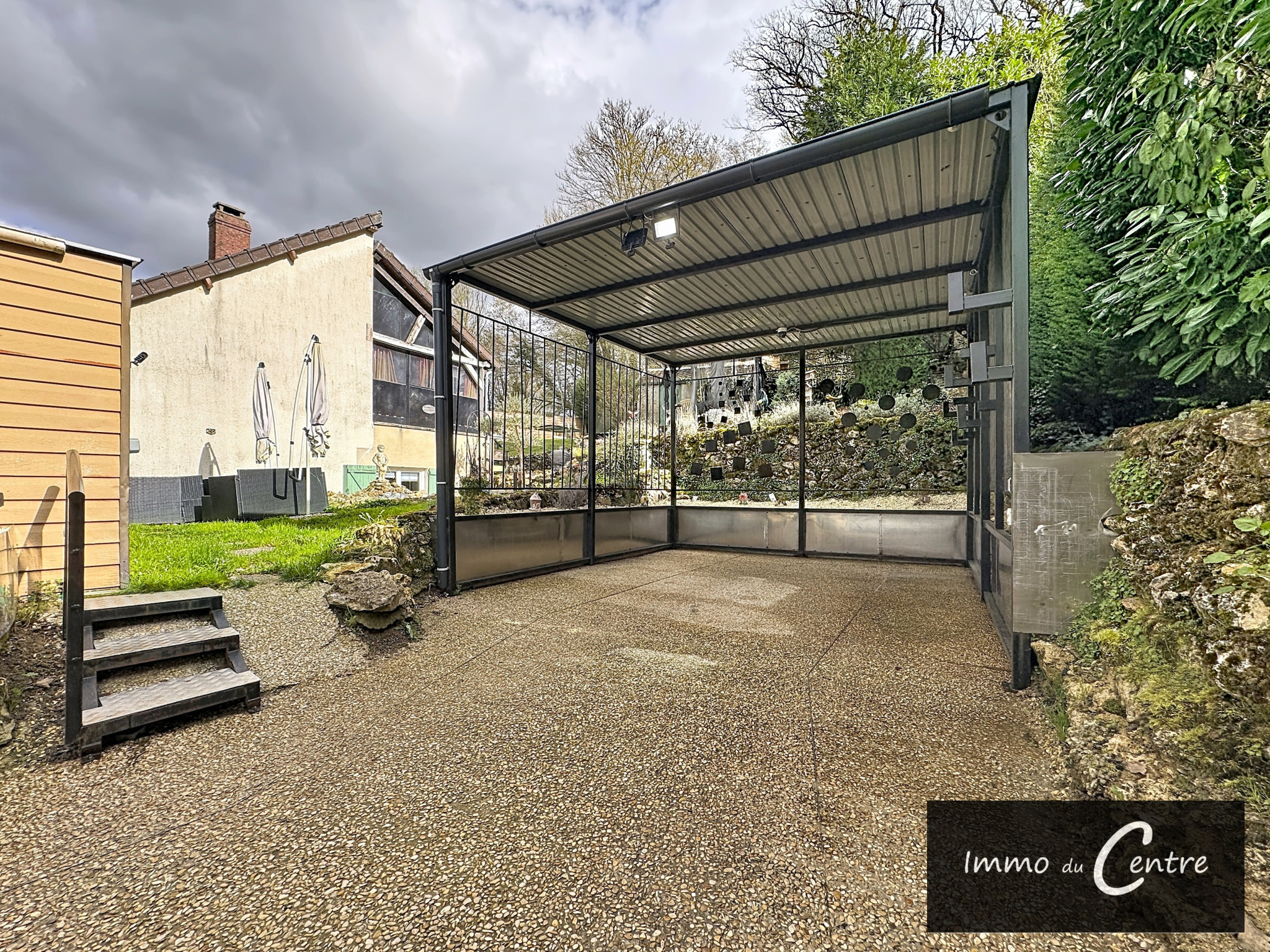 Maison à usage d'habitation comprenant entrée, salon-séjour avec cuisine ouverte, salle d'eau-toilettes, cave-cellier, à l'étage : couloir desservant trois chambres dont une avec accès terrasse couverte, en annexe : abris de jardin en tôle, carport, terrasse couverte, chalet, bassin, cour et jardin.
