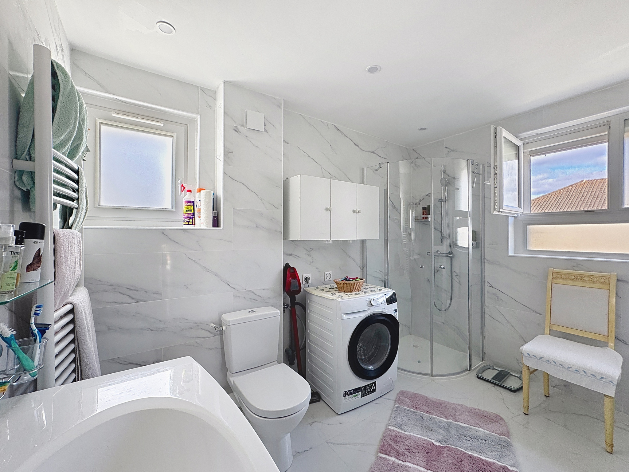 Prestations : Construction de 1975 en briques-vide d'air-briques plâtrières, Isolation murs 100 mm laine de verre + 75 mm de laine de roche, Isolation combles 200 mm laine de verre, sous-sol isolé, Double vitrage récent avec volets roulant électrique et moustiquaires, Installation électrique revue, chauffage par pompe à chaleur AIR/AIR réversible, ballon d'eau chaude thermodynamique, Tout à l'égout, exposition SUD-EST/NORD-OUEST, toutes commodités à pied.