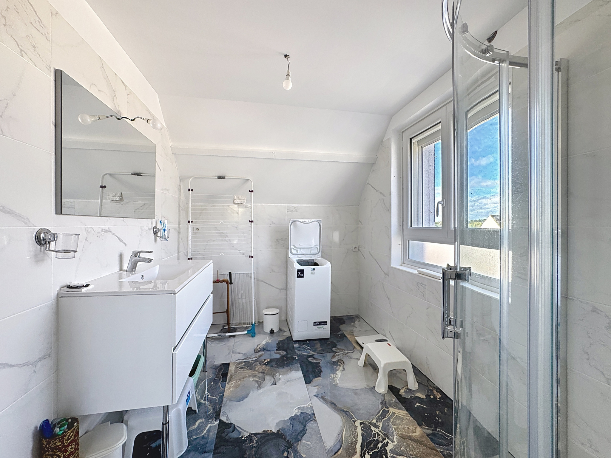 Pavillon de maçon proche centre-ville entièrement rénové en 2024 comprenant : hall d'entrée avec escalier en pierre, salon-séjour, cuisine dinatoire aménagée équipée, chambre, salle d'eau avec toilettes, cagibi, à l'étage : pièce palière distribuant quatre chambres, salle d'eau, toilettes, cagibi, grenier, combles perdus au-dessus, le tout élevé sur un sous-sol total compartimenté (garage, atelier, buanderie, toilettes), en annexe: terrasse de 40 m² avec barbecue, terrain clos, le tout sur une parcelle de 589 m² environ.