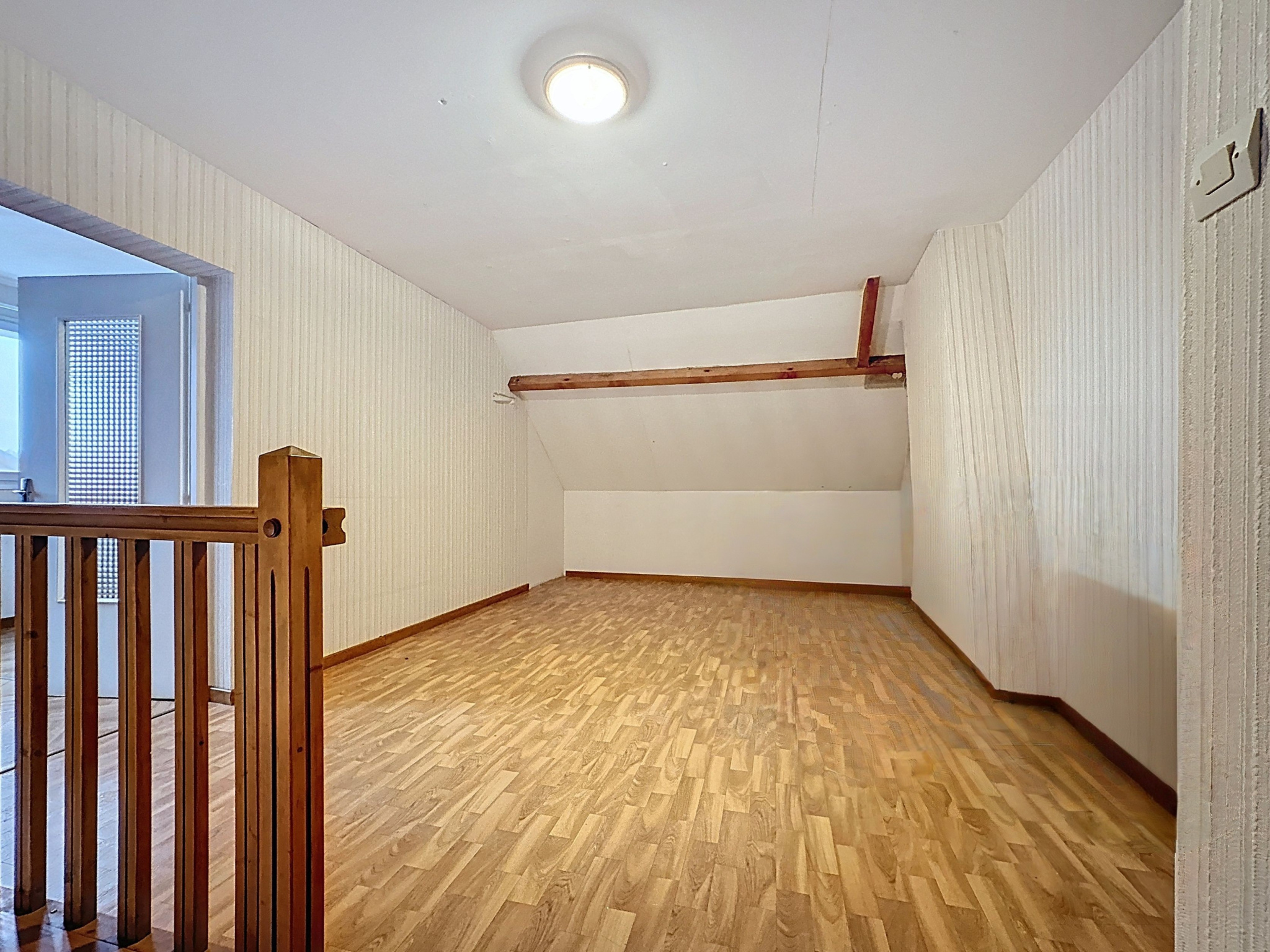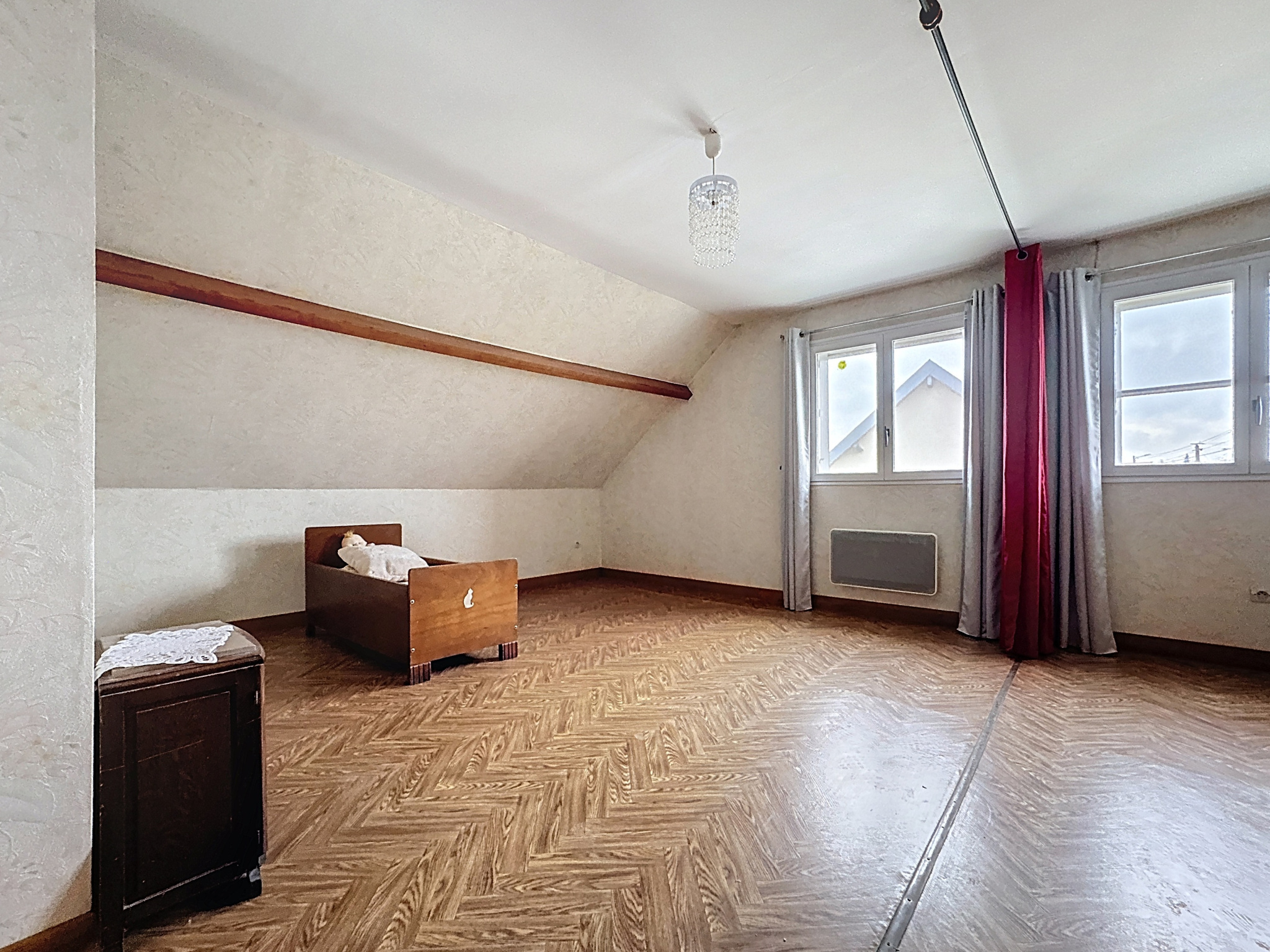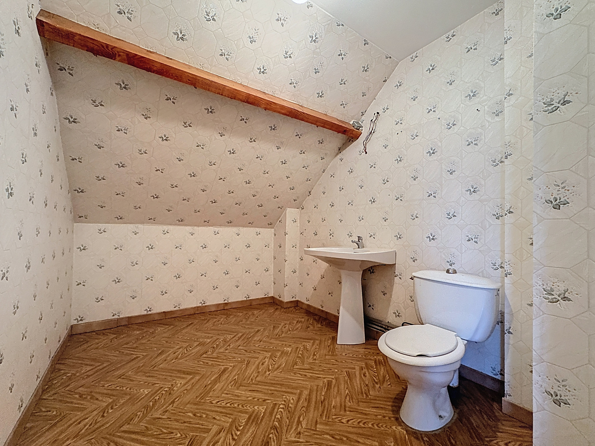 Pavillon de maçon sur sous-sol complet comprenant en rez de chaussée une entrée sur couloir desservant une cuisine ouverte sur véranda avec retour sur un salon séjour avec cheminée, une chambre, salle d'eau avec toilettes, accès garage. A l'étage une pièce palière distribue deux chambres dont une avec cabinet de toilettes avec WC. Un sous sol composé d'un garage (hauteur 2.50 m), un atelier, une cave, une chaufferie, une cuisine d'été, un bucher complètent la partie principale. En extérieur, abri jardin, terrain arboré, terrasse.