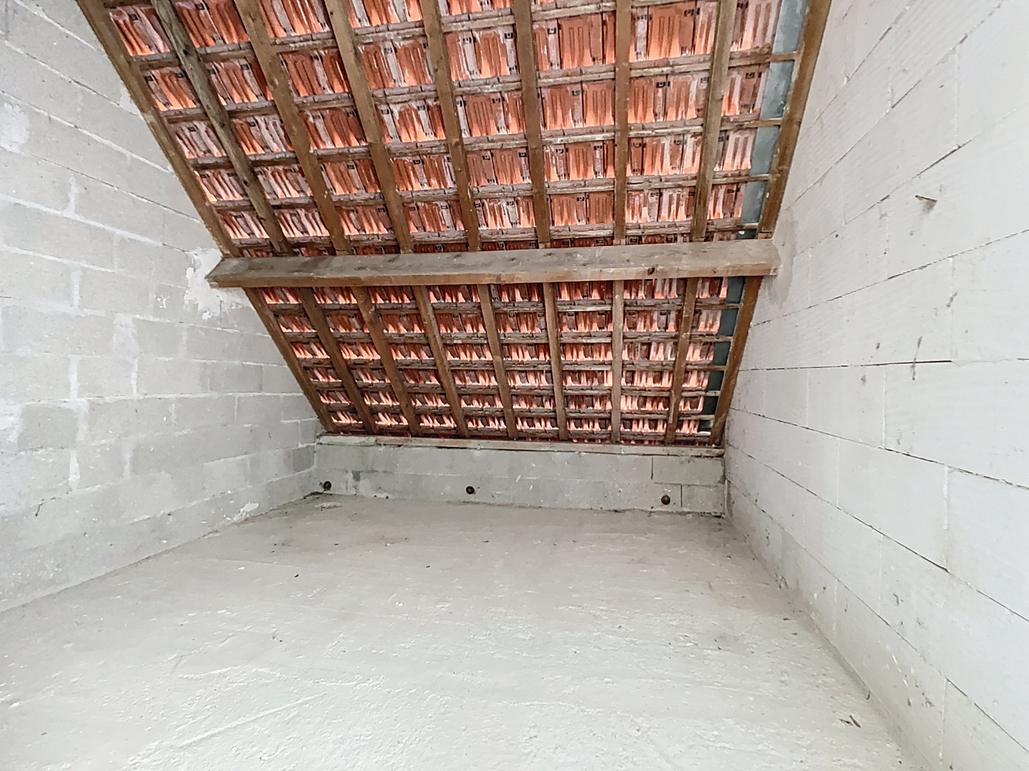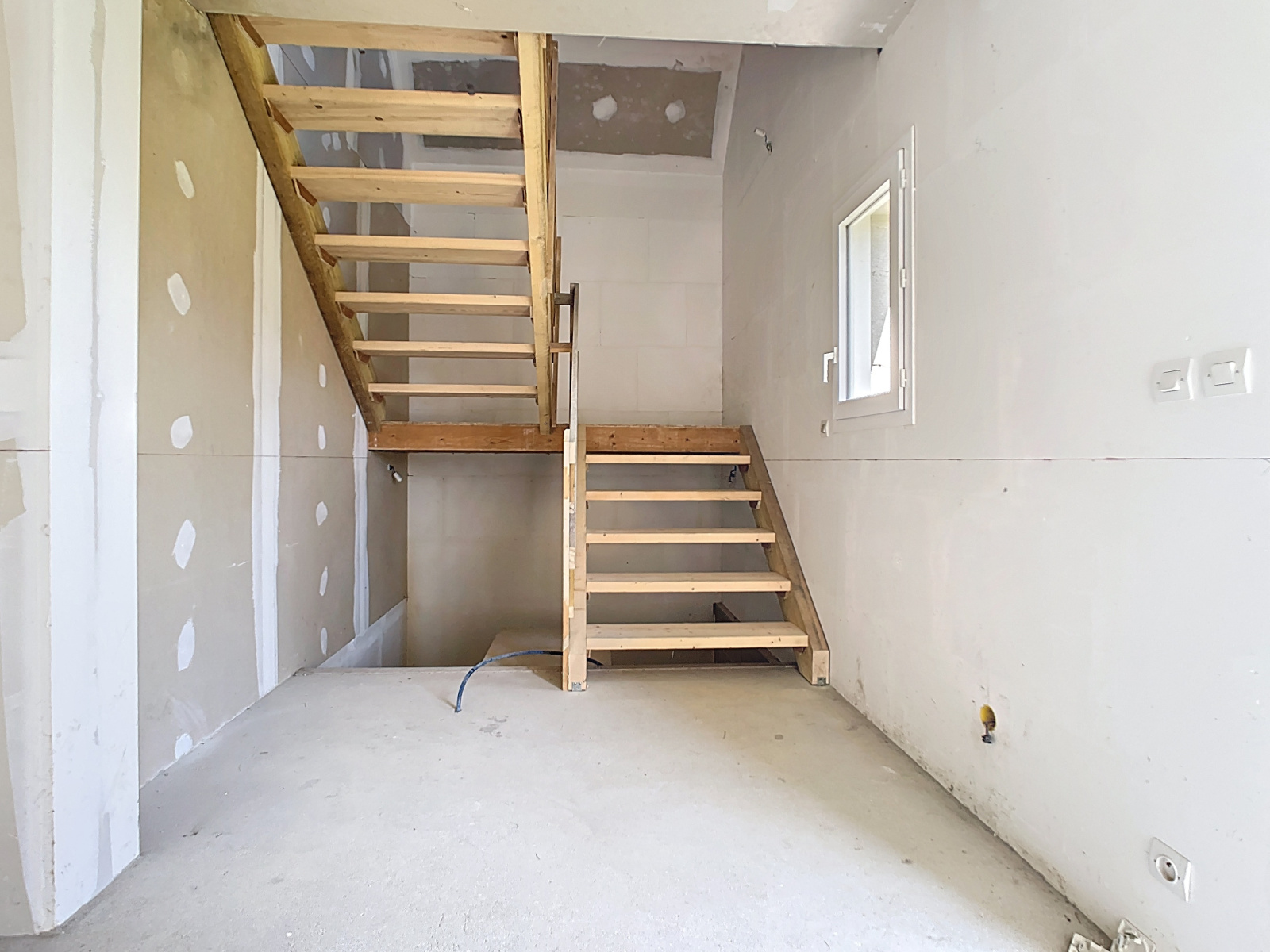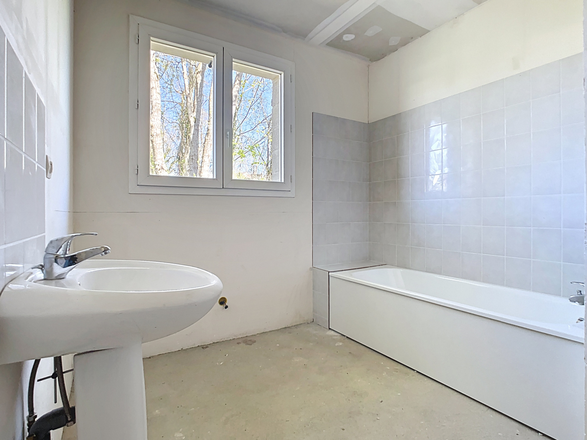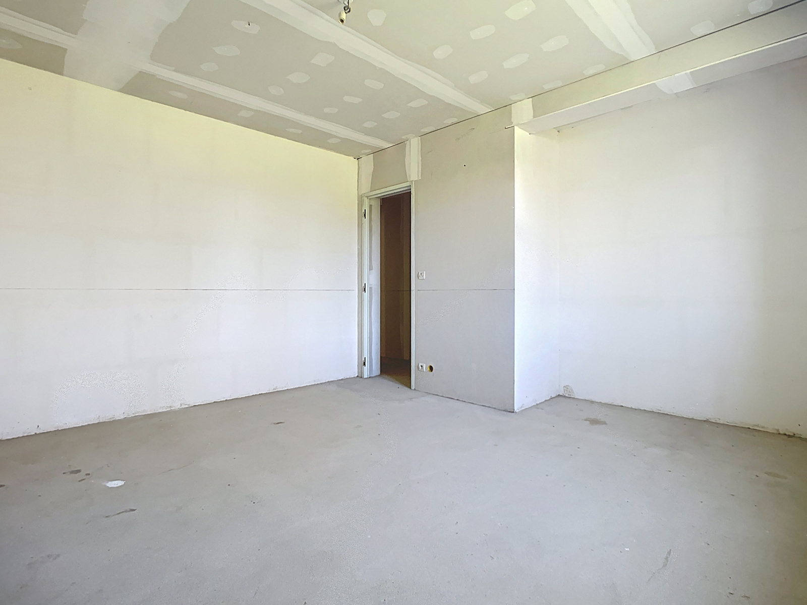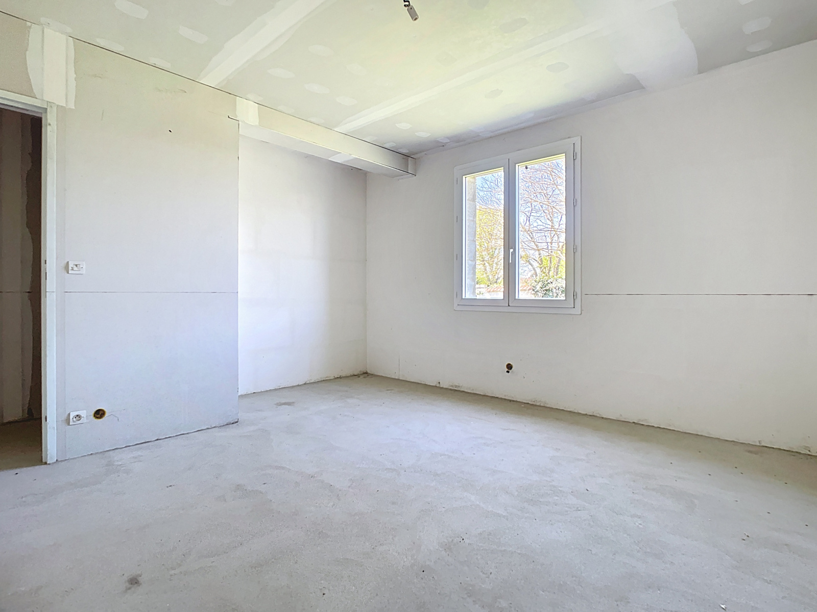 Maison de ville de type pavillon traditionnel à finir et sans éléments d'équipements comprenant : hall d'entrée, cuisine, salon-séjour avec conduit de cheminée, chambre, salle de bains, toilettes, buanderie, à l'étage: palier et couloir desservant deux chambres, salle de jeux, bureau, salle d'eau, toilettes, comble perdus au-dessus, le tout élevé sur sous-sol-cave compartimenté en trois pièces, plus vide-sanitaire. Terrain divisible et en zone constructible et sans aucuns vis-à-vis, assainissement tout à l'égout, double vitrage PVC avec volets PVC à la française, murs isolés par 100 mm de laine de verre, toiture isolée par 200 mm de laine de verre, et 300 mm de floconnage au plafond de l'étage, exposition sud/ouest.