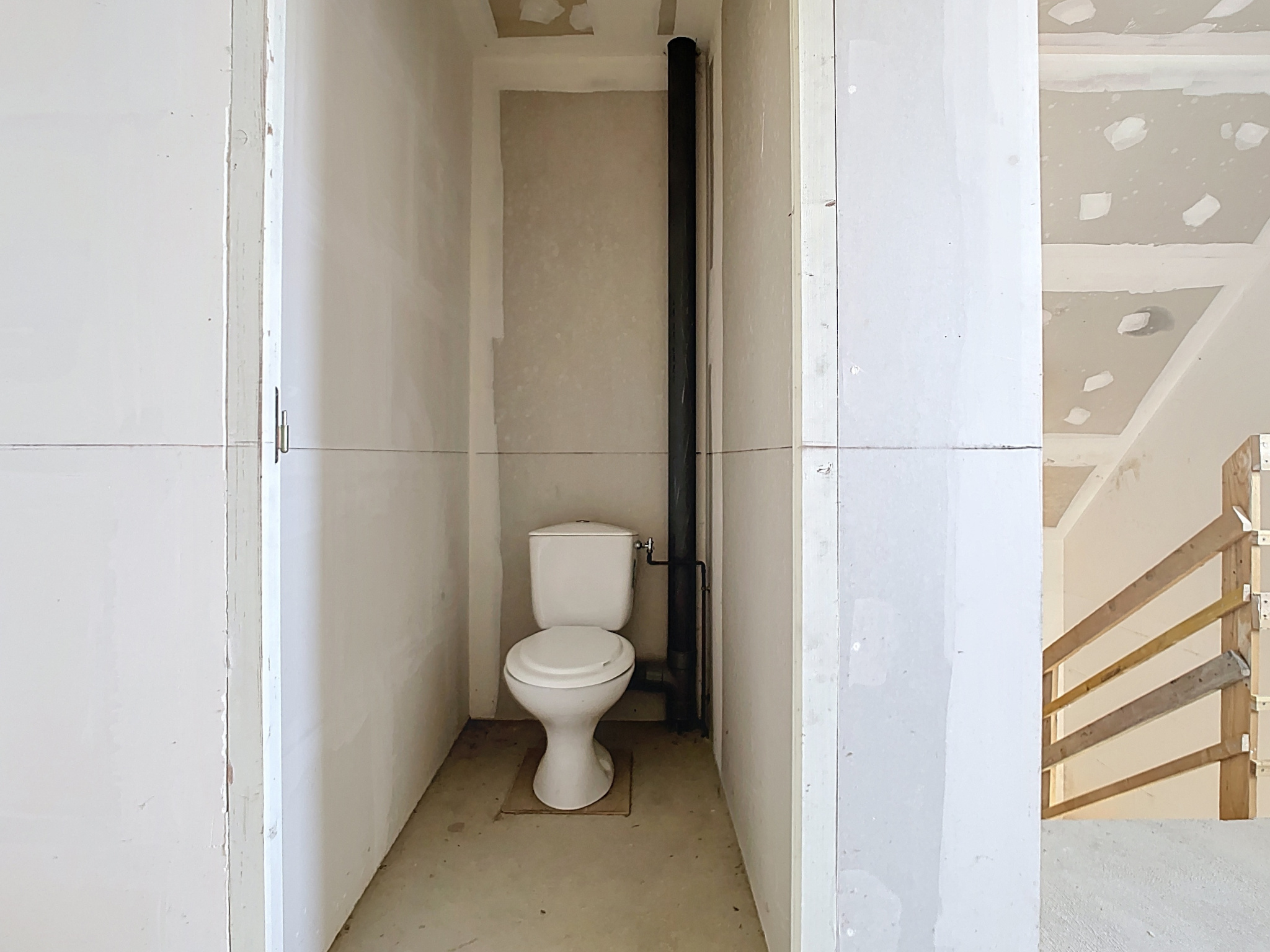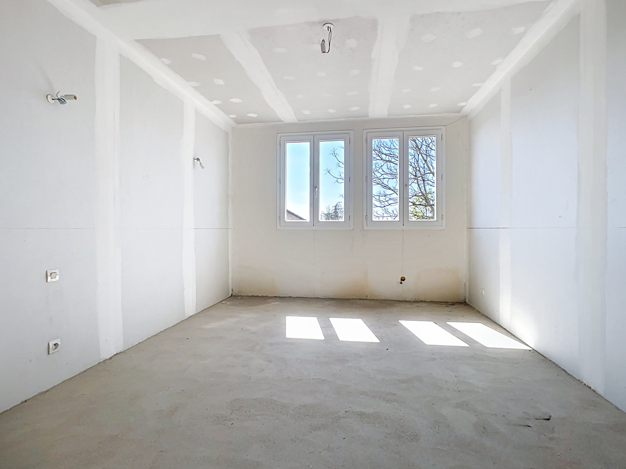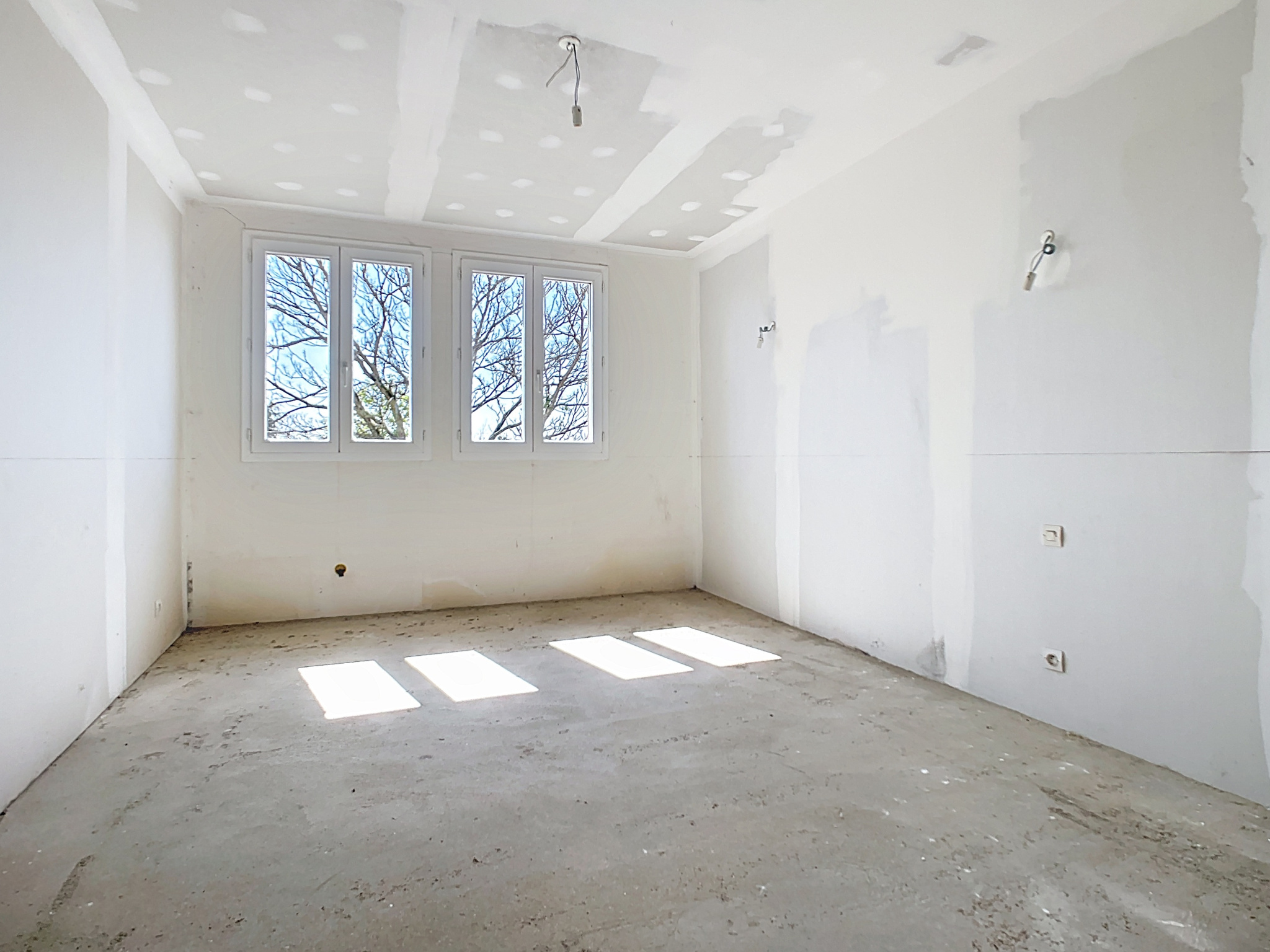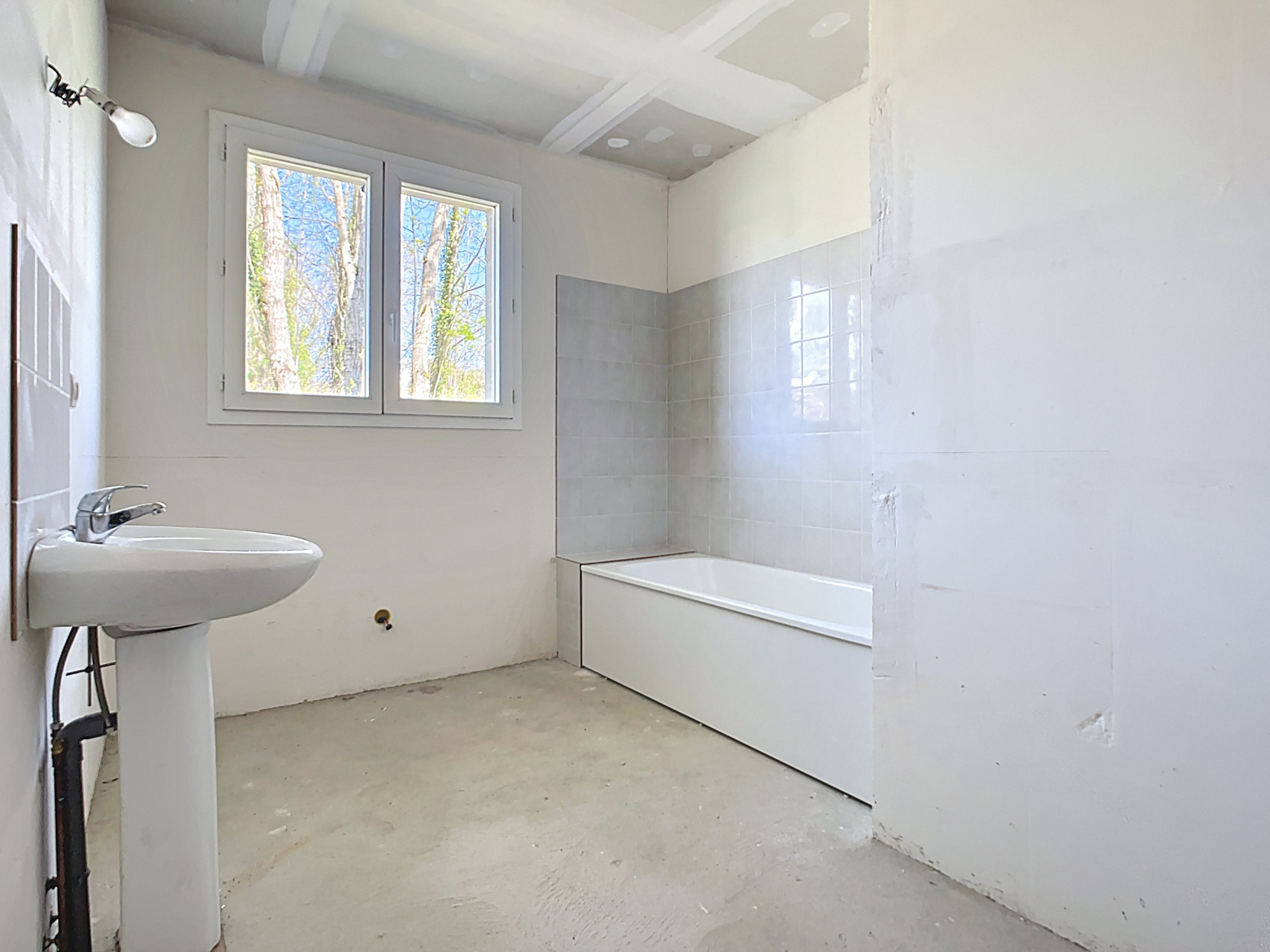 Maison de ville de type pavillon traditionnel à finir et sans éléments d'équipements comprenant : hall d'entrée, cuisine, salon-séjour avec conduit de cheminée, chambre, salle de bains, toilettes, buanderie, à l'étage: palier et couloir desservant deux chambres, salle de jeux, bureau, salle d'eau, toilettes, comble perdus au-dessus, le tout élevé sur sous-sol-cave compartimenté en trois pièces, plus vide-sanitaire. Terrain divisible et en zone constructible et sans aucuns vis-à-vis, assainissement tout à l'égout, double vitrage PVC avec volets PVC à la française, murs isolés par 100 mm de laine de verre, toiture isolée par 200 mm de laine de verre, et 300 mm de floconnage au plafond de l'étage, exposition sud/ouest.