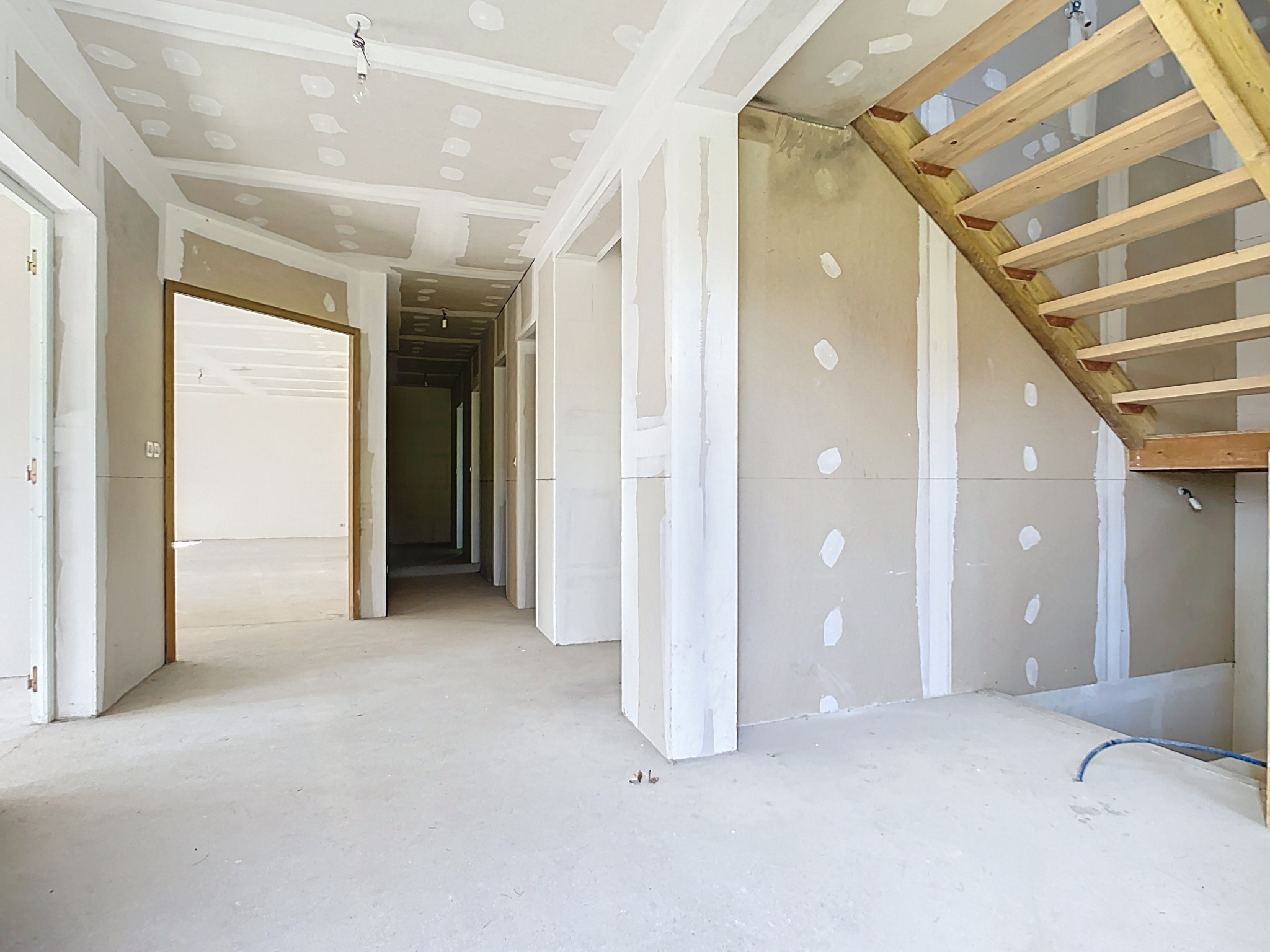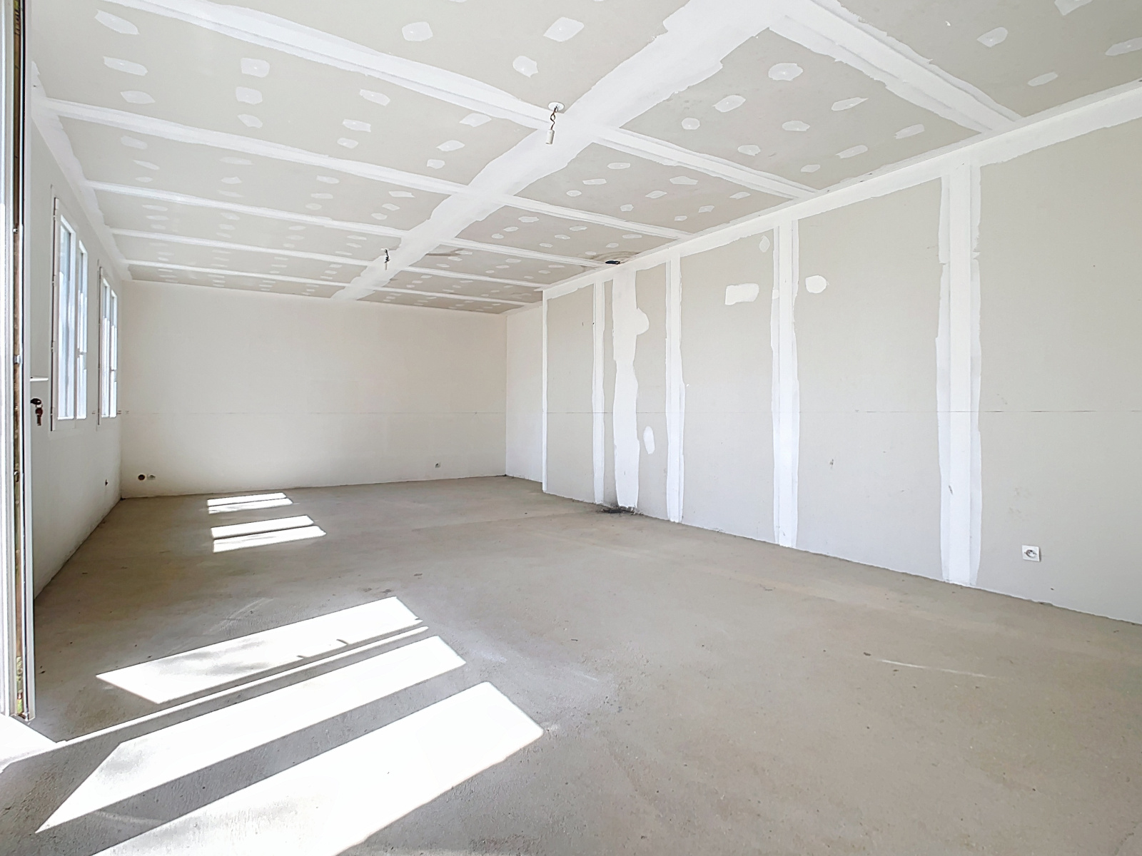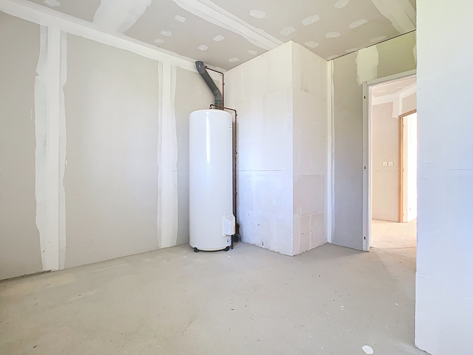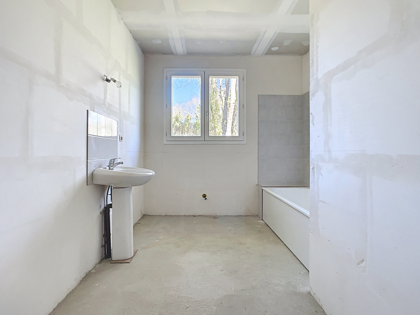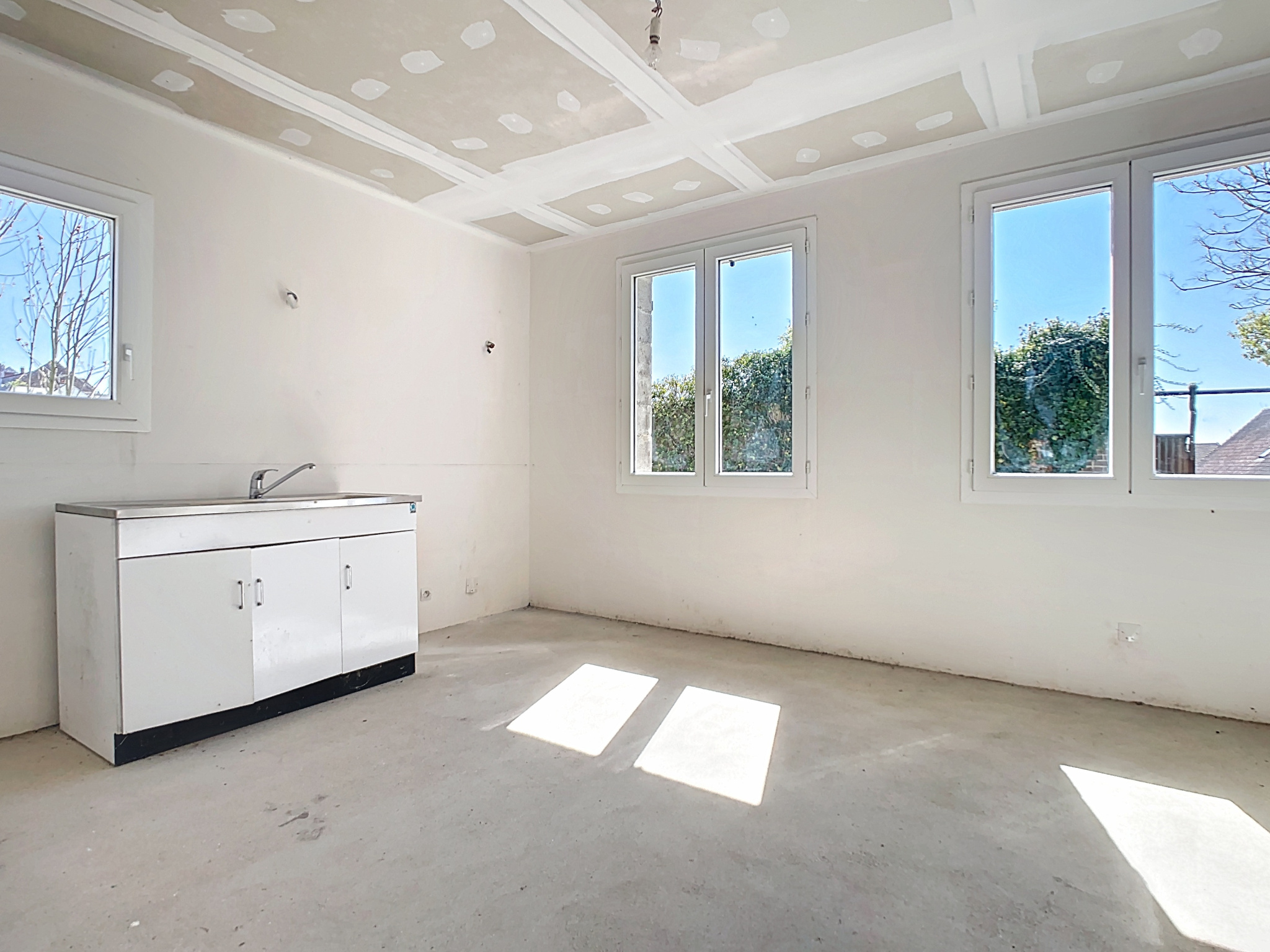 Maison de ville de type pavillon traditionnel à finir et sans éléments d'équipements comprenant : hall d'entrée, cuisine, salon-séjour avec conduit de cheminée, chambre, salle de bains, toilettes, buanderie, à l'étage: palier et couloir desservant deux chambres, salle de jeux, bureau, salle d'eau, toilettes, comble perdus au-dessus, le tout élevé sur sous-sol-cave compartimenté en trois pièces, plus vide-sanitaire. Terrain divisible et en zone constructible et sans aucuns vis-à-vis, assainissement tout à l'égout, double vitrage PVC avec volets PVC à la française, murs isolés par 100 mm de laine de verre, toiture isolée par 200 mm de laine de verre, et 300 mm de floconnage au plafond de l'étage, exposition sud/ouest.