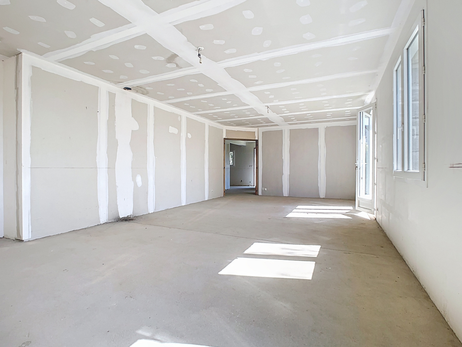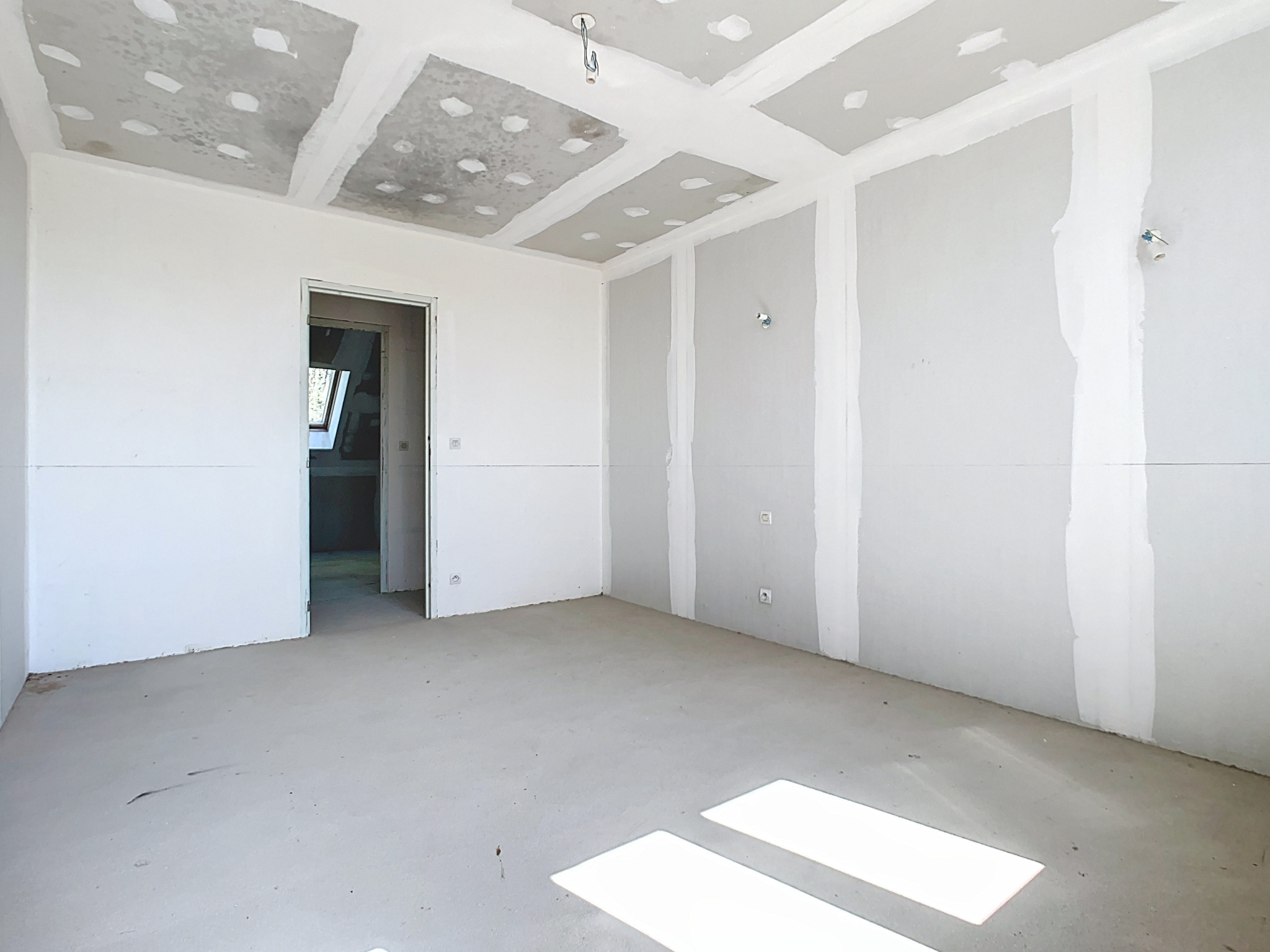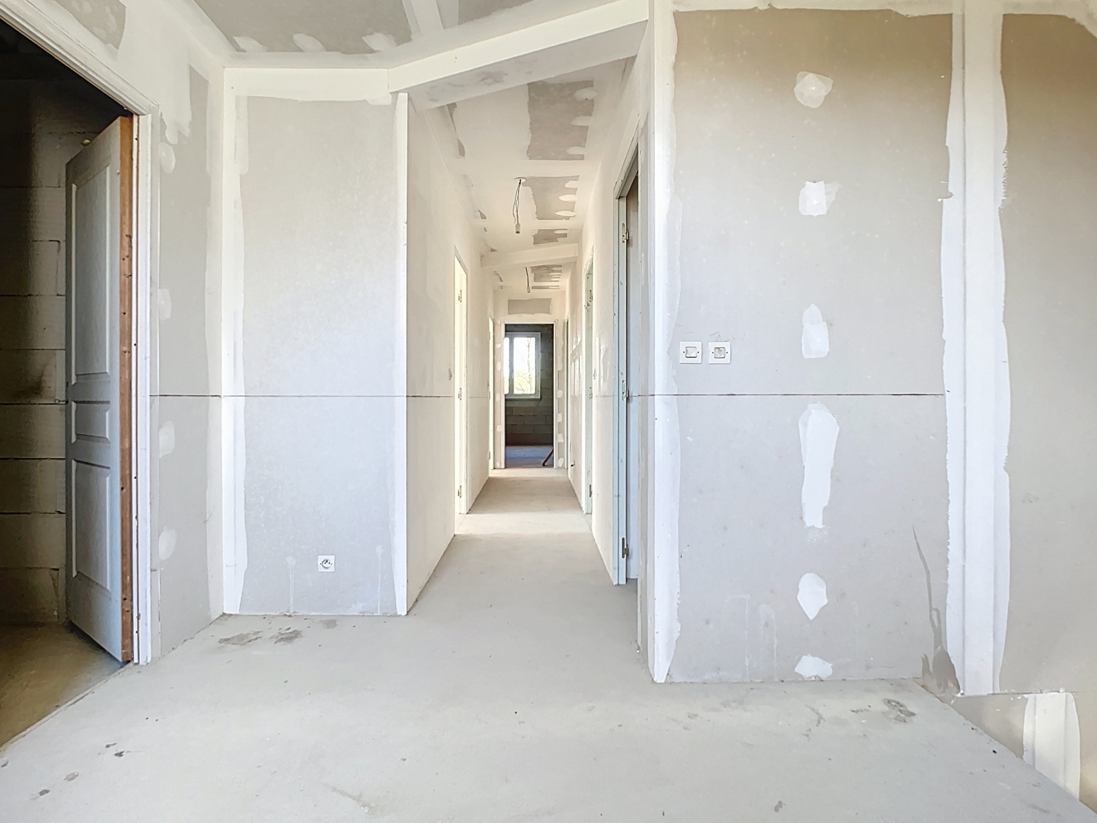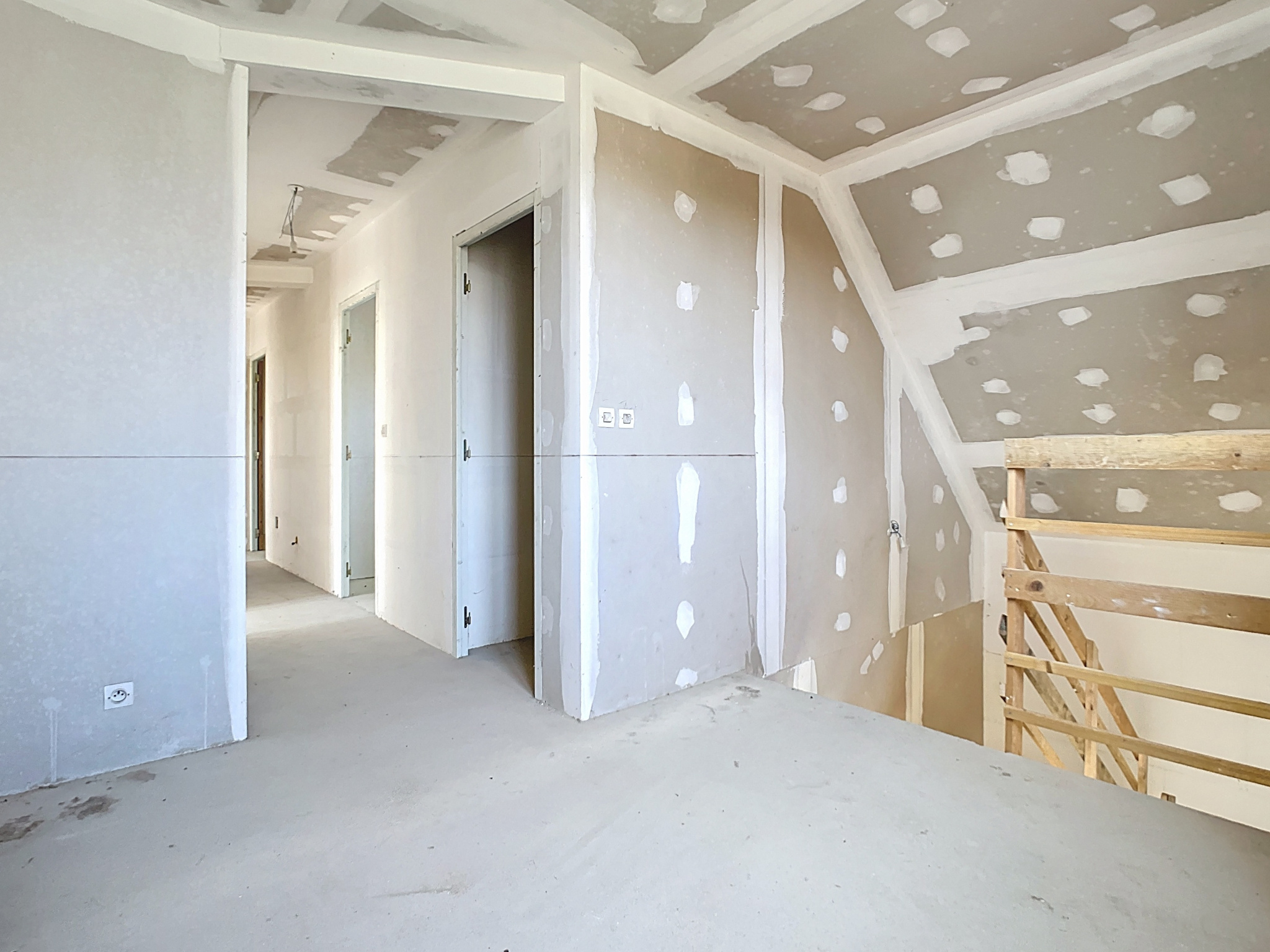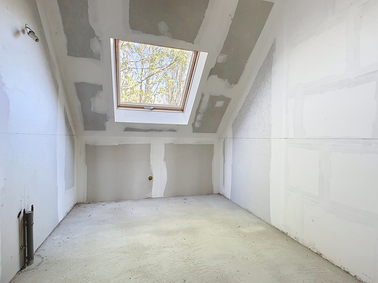Maison de ville de type pavillon traditionnel à finir et sans éléments d'équipements comprenant : hall d'entrée, cuisine, salon-séjour avec conduit de cheminée, chambre, salle de bains, toilettes, buanderie, à l'étage: palier et couloir desservant deux chambres, salle de jeux, bureau, salle d'eau, toilettes, comble perdus au-dessus, le tout élevé sur sous-sol-cave compartimenté en trois pièces, plus vide-sanitaire. Terrain divisible et en zone constructible et sans aucuns vis-à-vis, assainissement tout à l'égout, double vitrage PVC avec volets PVC à la française, murs isolés par 100 mm de laine de verre, toiture isolée par 200 mm de laine de verre, et 300 mm de floconnage au plafond de l'étage, exposition sud/ouest.