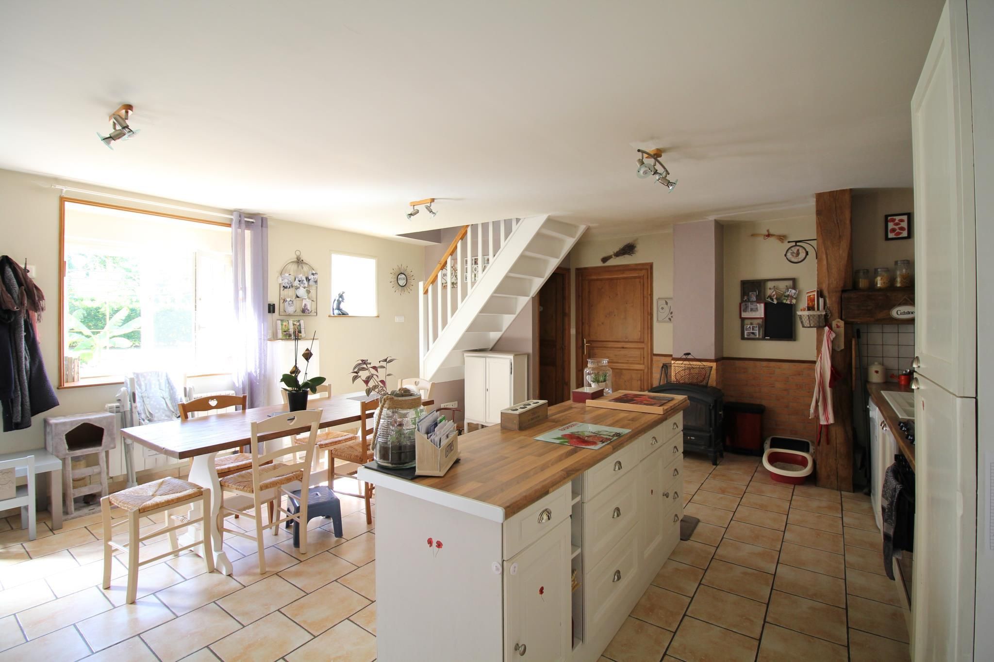 Située à 25 min D'EPERNAY, 20 Min de Viels maisons, 10 min de MONTMIRAIL, maison de pays entièrement rénovée, comprenant entrée sur salon séjour avec cuisine ouverte, salle de bains, toilettes, à l'étage: pièce palière desservant trois chambres dont une avec dressing, salle d'eau, toilettes, en annexe: garage, et terrain clos de grillage, le tout sur 1 450 m² environ. Prestations: maison sur vide-sanitaire, toiture isolée par 200 mm de laine de verre, rampants isolés par 100 mm de laine de roche, murs rez-de-chaussée isolés vide d'air et carreaux de plâtre, chauffage électrique + poêle à bois, double vitrage avec volets roulants, portail électrique, installation intérieure électrique récente, assainissement par fosse septique et champs d'épandage, exposition S/O.