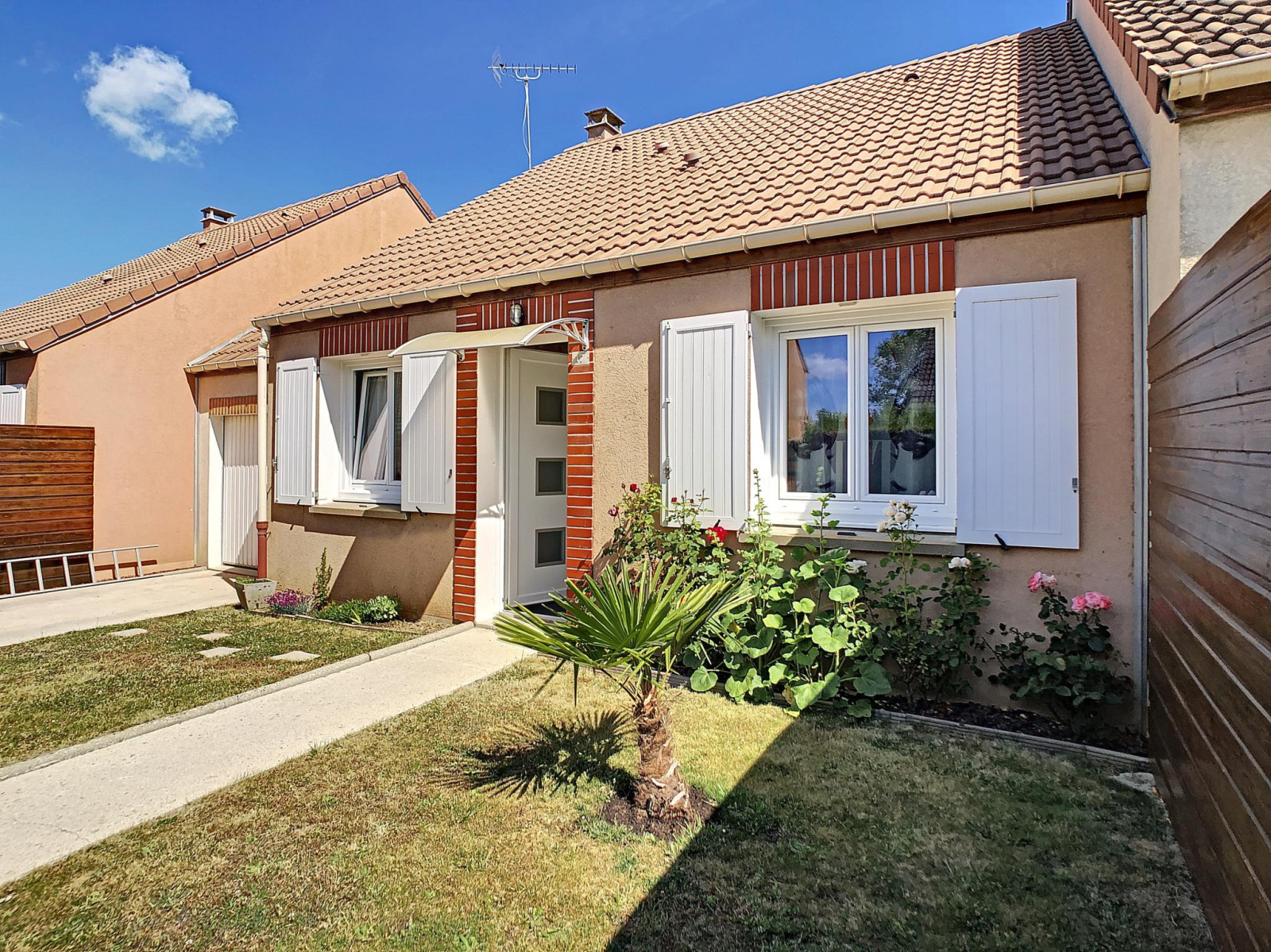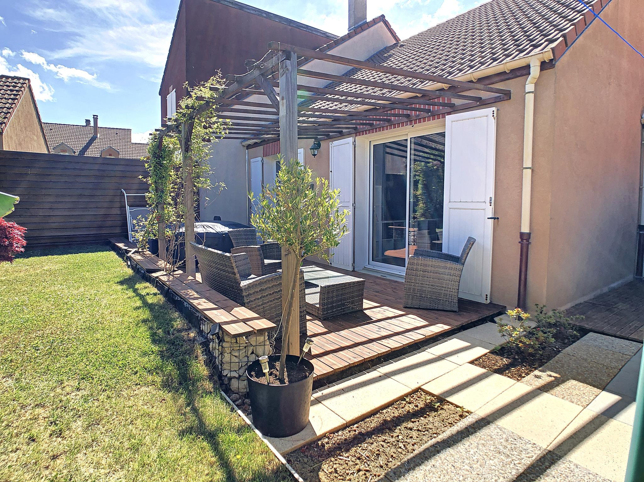 A quelques minutes à pieds, du centre ville de Montmirail, de ses commodités, commerces et écoles, Century 21 l'Immobilière du Centre vous propose cette charmante maison rénovée. Sur 60 m² elle vous offre une vie de plain pied comprenant une entrée sur cuisine aménagée équipée ouverte sur un salon séjour(accès sur la terrasse). Deux chambres avec rangement, une salle d'eau avec toilettes finissent l'ensemble habitable. Un garage attenant, un abri de jardin et une très belle terrasse avec pergolas complètent l'ensemble sur un terrain clos cadastré de 229 m² C le + : Vie intégrale de plain pied, et belle terrasse à l'abri des regards