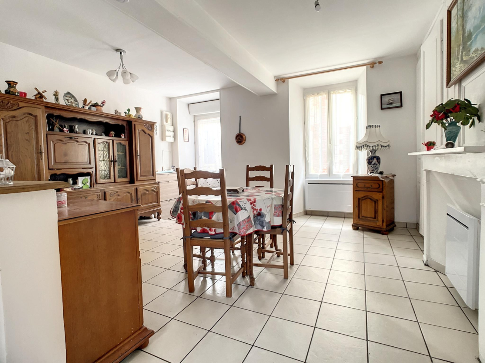 Centre-ville de Montmirail avec toutes les commodités à pied, Maison de ville, habitable de suite comprenant : entrée sur salon séjour avec placards et cuisine ouverte, dégagement avec placard donnant accès à l'étage et à la cour, à l'étage: couloir avec placards, salle de bains avec toilettes, chambre avec placards, au second: chambre avec salle d'eau et toilettes. En annexe: cour close de murs et sans aucun vis-à-vis, cave voutée, le tout sur une parcelle de 76 m² environ. Prestations : Centre ville et commerces à pied, chauffage par radiateurs à inertie sèche NOIROT de 2021, menuiseries double vitrage PVC blanc avec volets roulant, installation intérieure électrique en état d'usage et sécurisée, assainissement par tout à l'égout, double exposition EST/OUEST.