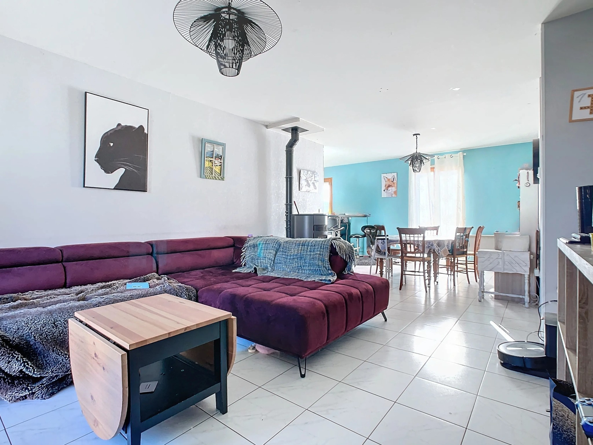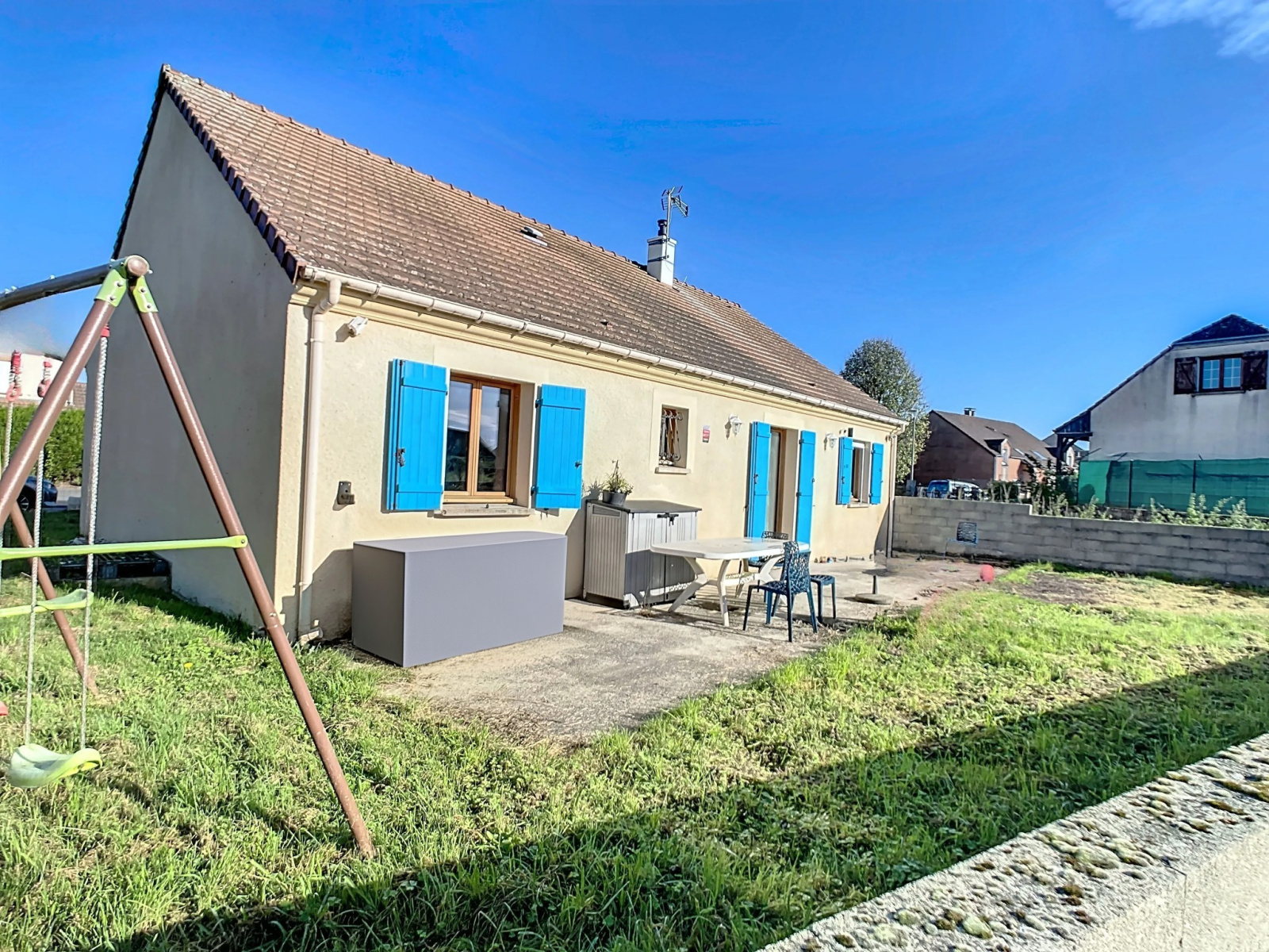 Prestations: Construction Maisons PIERRE de 2009, chauffage électrique plus poêle à granules, triple vitrage, plain-pied, exposition SUD-EST/NORD-OUEST, fibre en place, commerces, écoles et collège à pied.