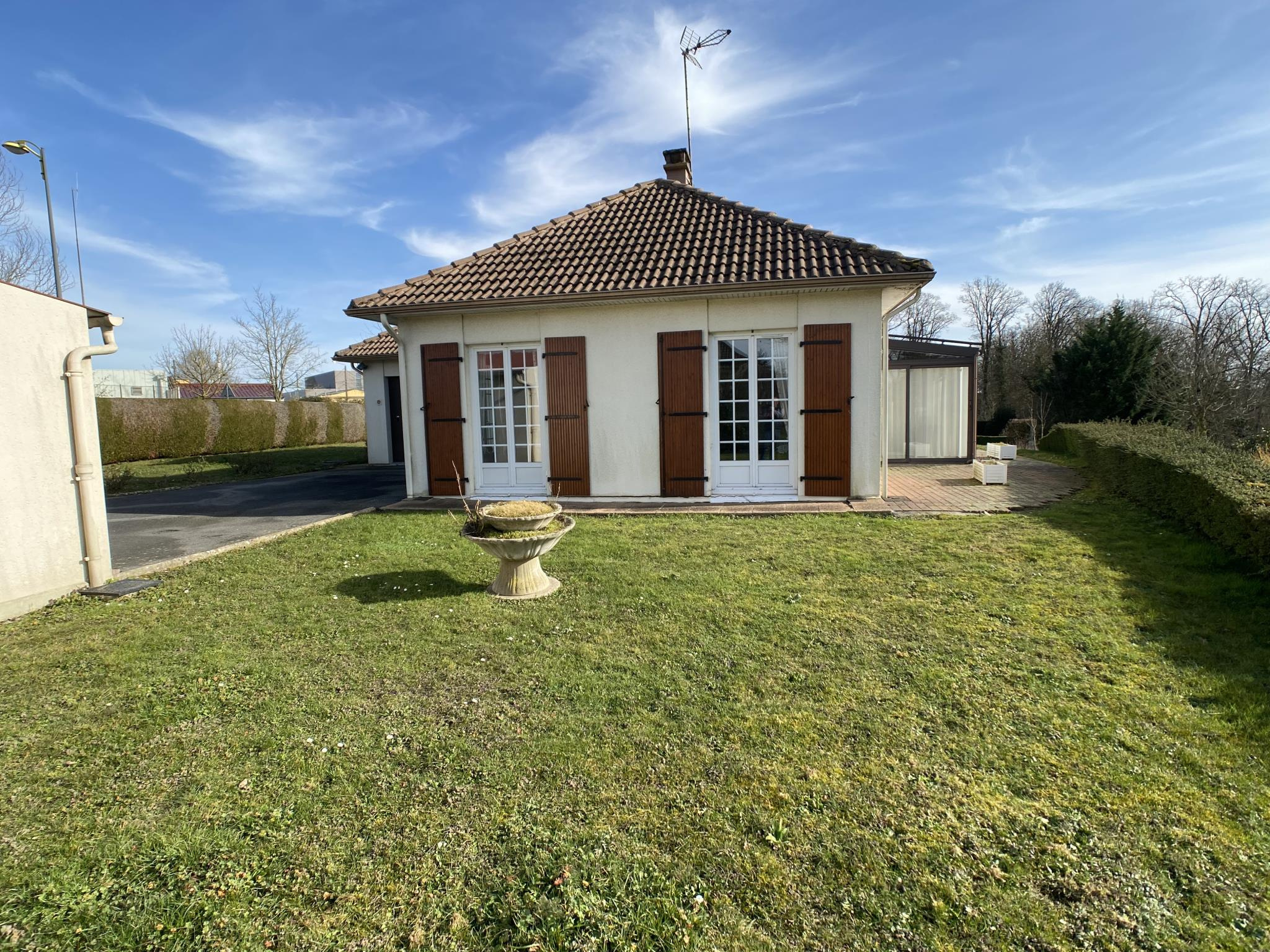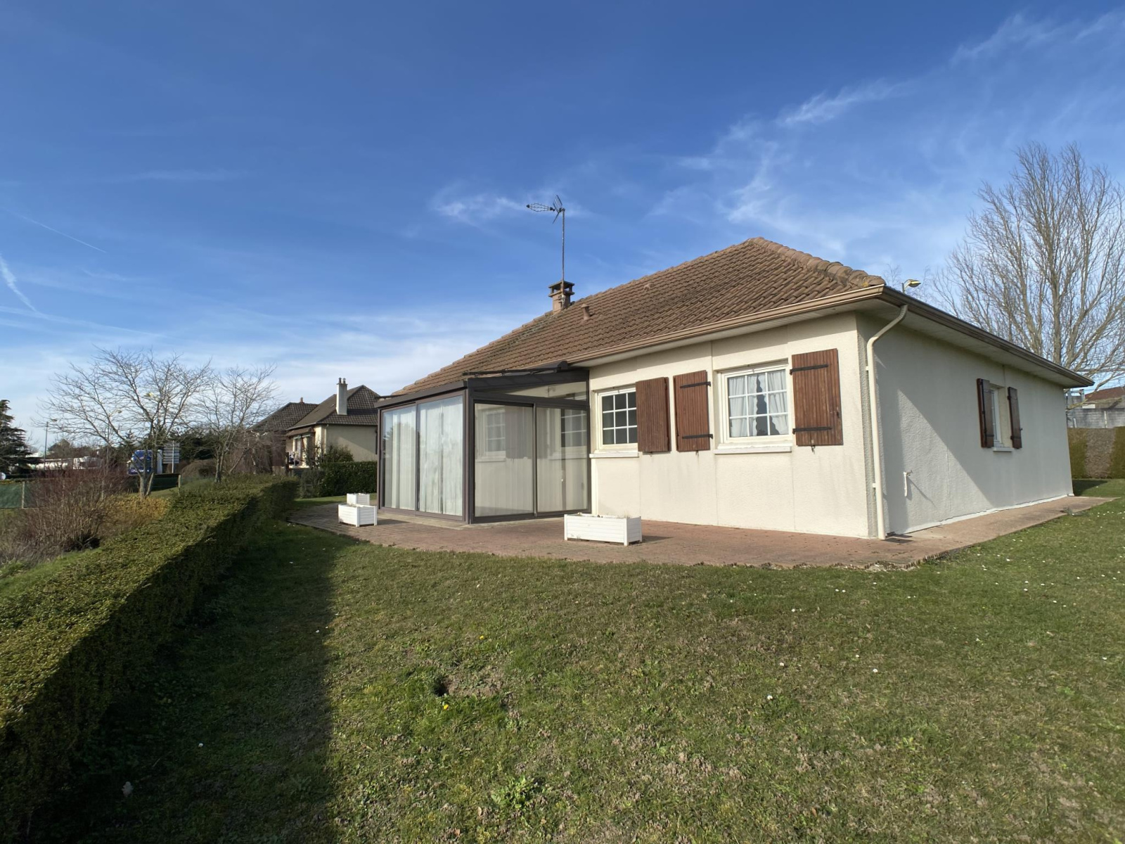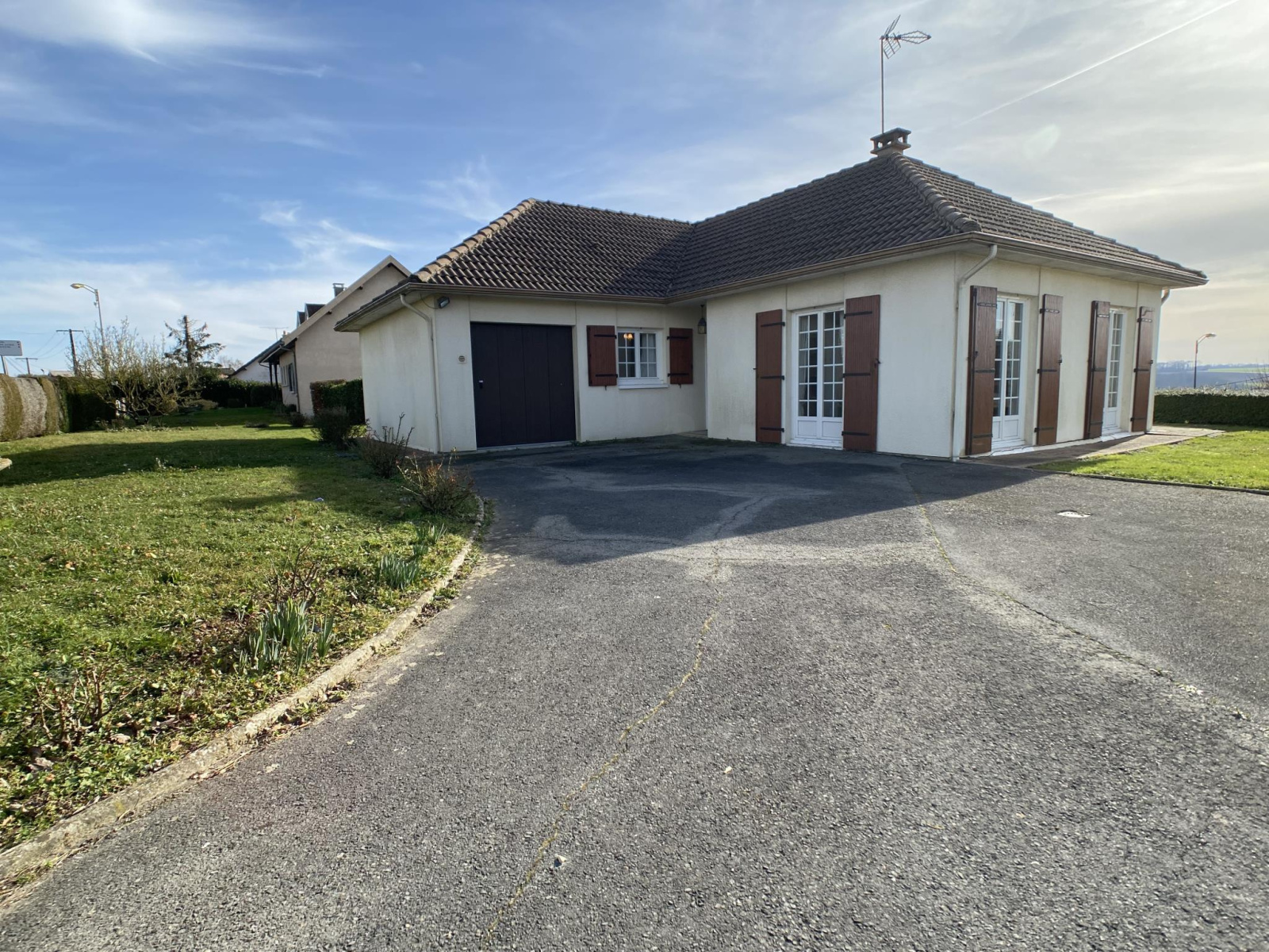 A quelques minutes à pieds des commodités, commerces, écoles du Centre ville de Montmirail, Century 21 l'Immobilière du Centre vous propose cette charmante maison de plain pied. Elle offre sur environ 86 m², une entrée couloir desservant une cuisine aménagée équipée, un salon séjour avec cheminée insert, deux chambres, un salle de bains, toilettes et un espace buanderie avec une partie douche. Un garage attenant et un autre séparé complète l'ensemble sur une parcelle d'environ 1 100m² non close. Vrai plain pied rare. A visiter sans tarder