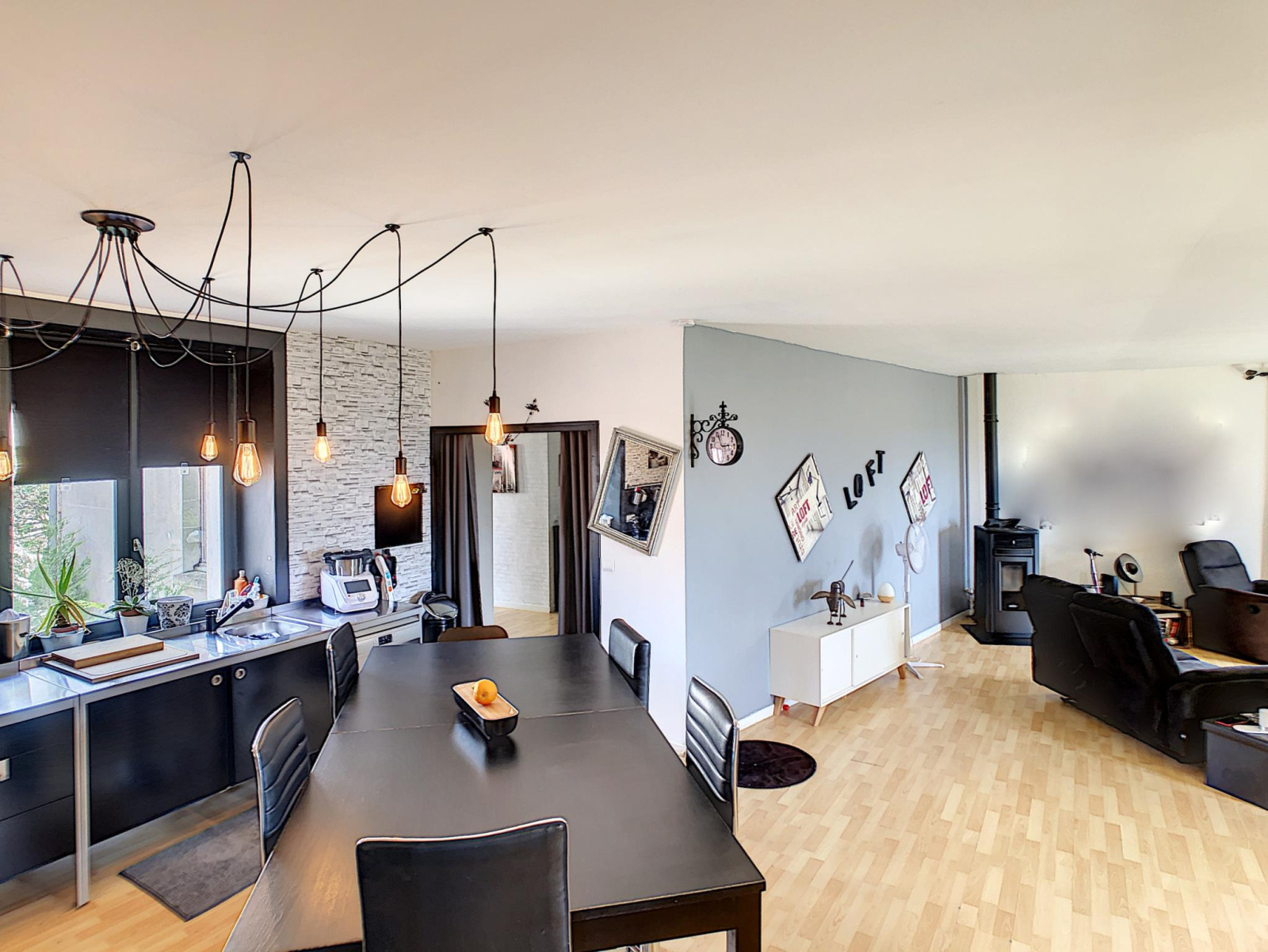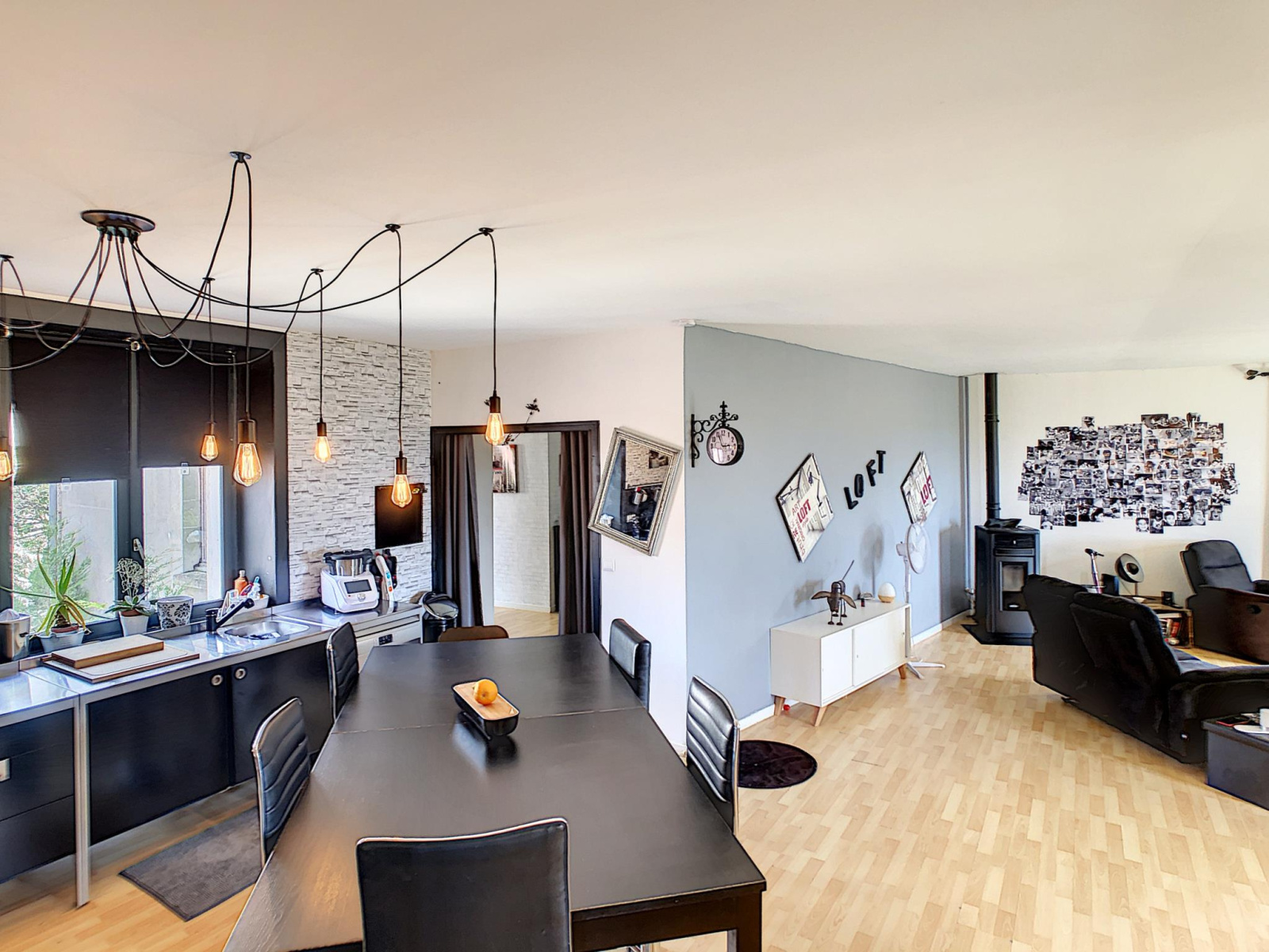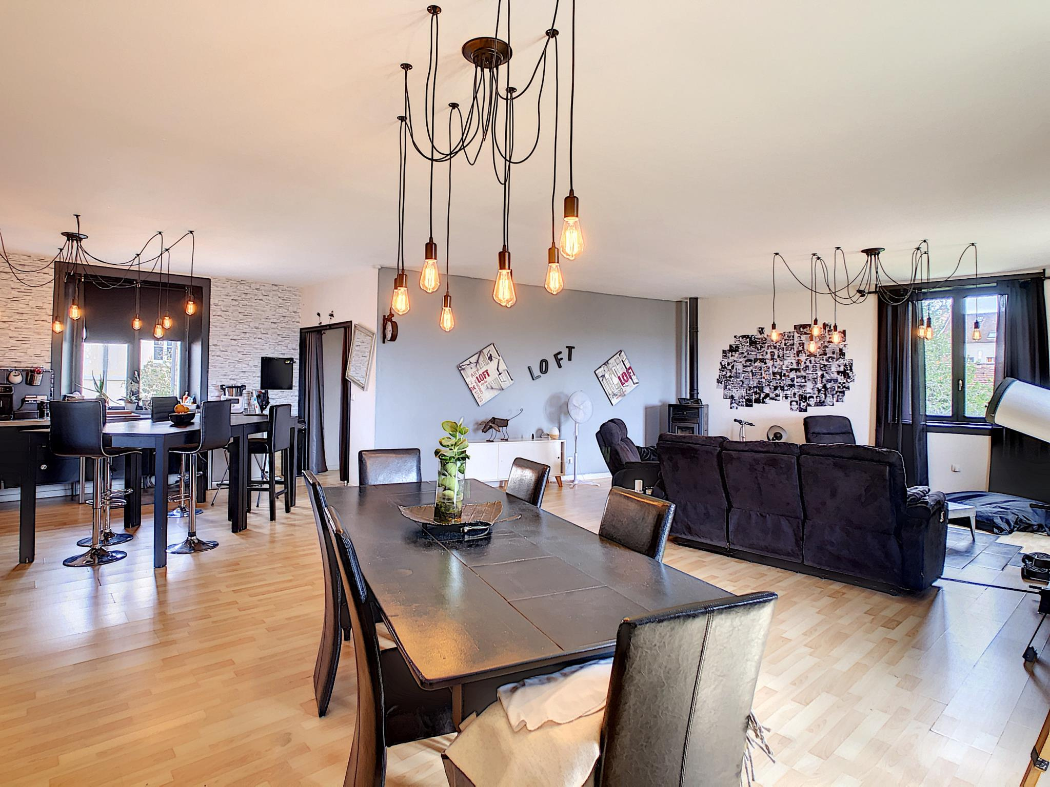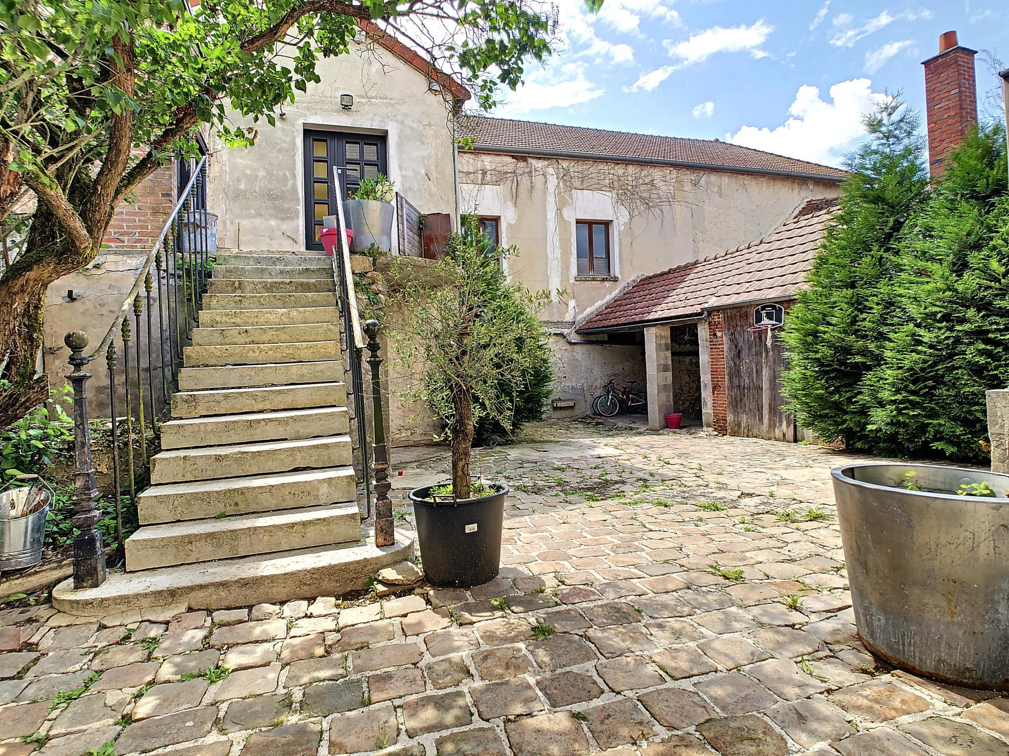 Centre-ville de Montmirail, Maison de ville de type LOFT comprenant entrée avec bureau, toilettes et placards, salon séjour avec cuisine aménagée équipée (75 m²) couloir desservant trois chambres, salle d'eau (douche et baignoire)et toilettes, au-dessus combles aménageable sur 150 m², l'ensemble sur un sous-sol total de 180 m² compartimenté en trois pièces, cour pavée sur l'avant et terrain avec puits sur l'arrière, le tout sur une parcelle de 663 m² environ, possibilité de location de garage à moins de 100 m. Prestations: rénovation intérieure de 2012 (électricité, plomberie) isolation sous-sol par 100 mm de polystyrène extrudé, combles isolés au sol par 200 + 280 mm de laine de verre, murs isolé par 50 mm de laine de verre et SIPOREX de 50, toiture de 1999, assainissement par tout à l'égout, exposition SUD/OUEST et vue sur la vallée, toutes commodités à pied.
