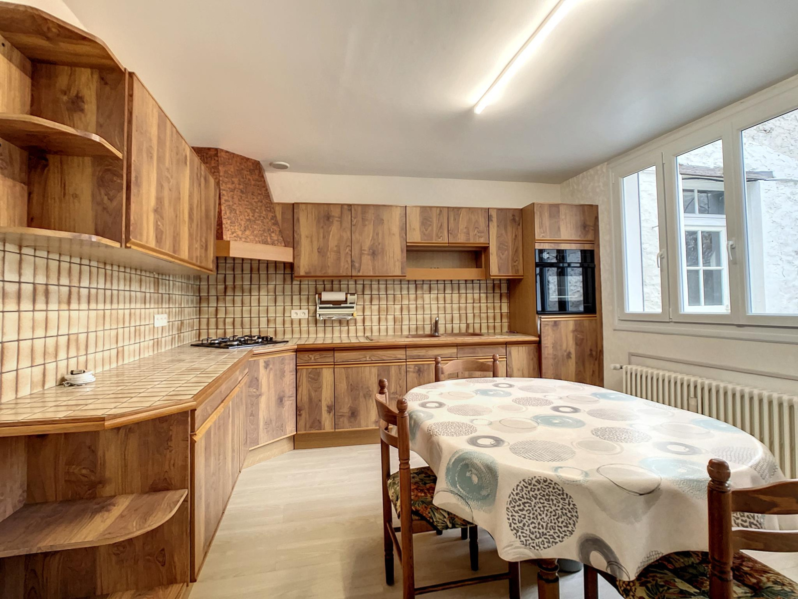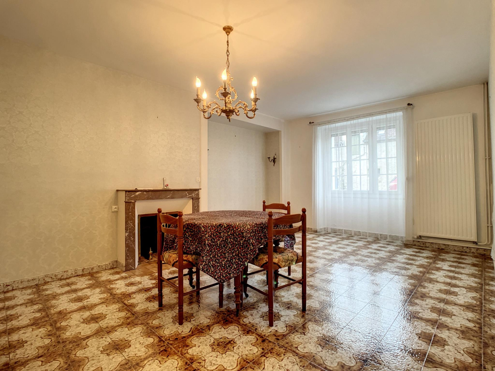Centre-ville de Montmirail, toutes commodités à pied, maison comprenant entrée sur couloir, bureau ou chambre, Salon-séjour, cuisine aménagée équipée avec accès cave voutée, salle d'eau, toilettes, à l'étage: palier desservant trois chambres, toilettes, dégagement (possibilité création salle d'eau) combles aménageables sur l'ensemble, en annexe: garage-chaufferie, atelier avec combles sur l'ensemble, appentis au fond du terrain, jardin clos de murs et sans vis-à-vis, le tout sur une parcelle de 770 m² environ. Prestations: maison de ville habitable de suite avec vie de plain-pied, double vitrage récent de 2006 à 2015 avec volets roulant électrique, chauffage central au gaz de ville par chaudière VIESSMANN de 2001, exposition SUD, toutes commodités à pied.
