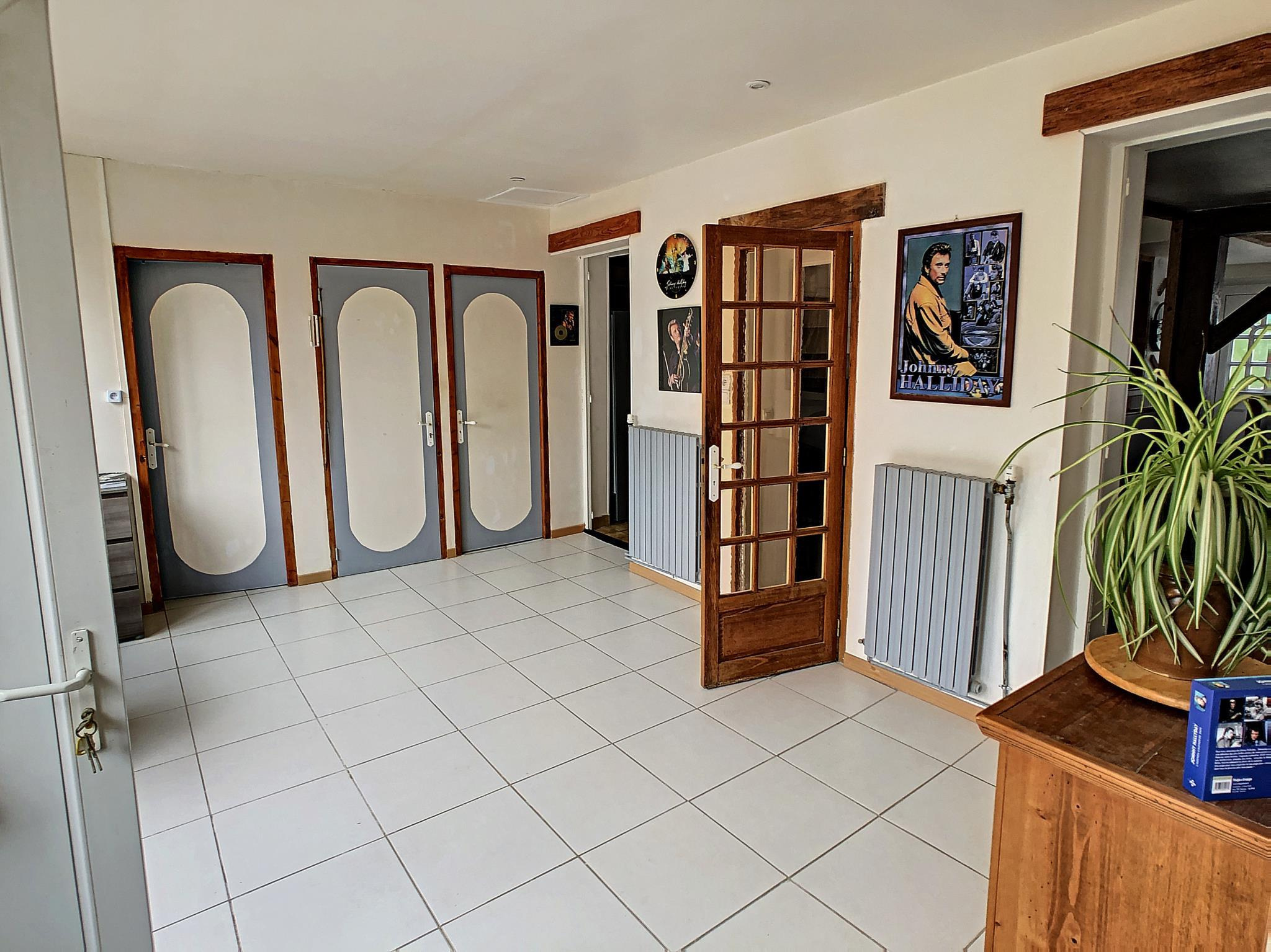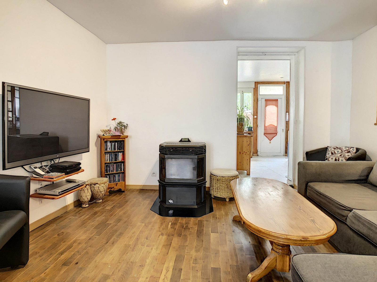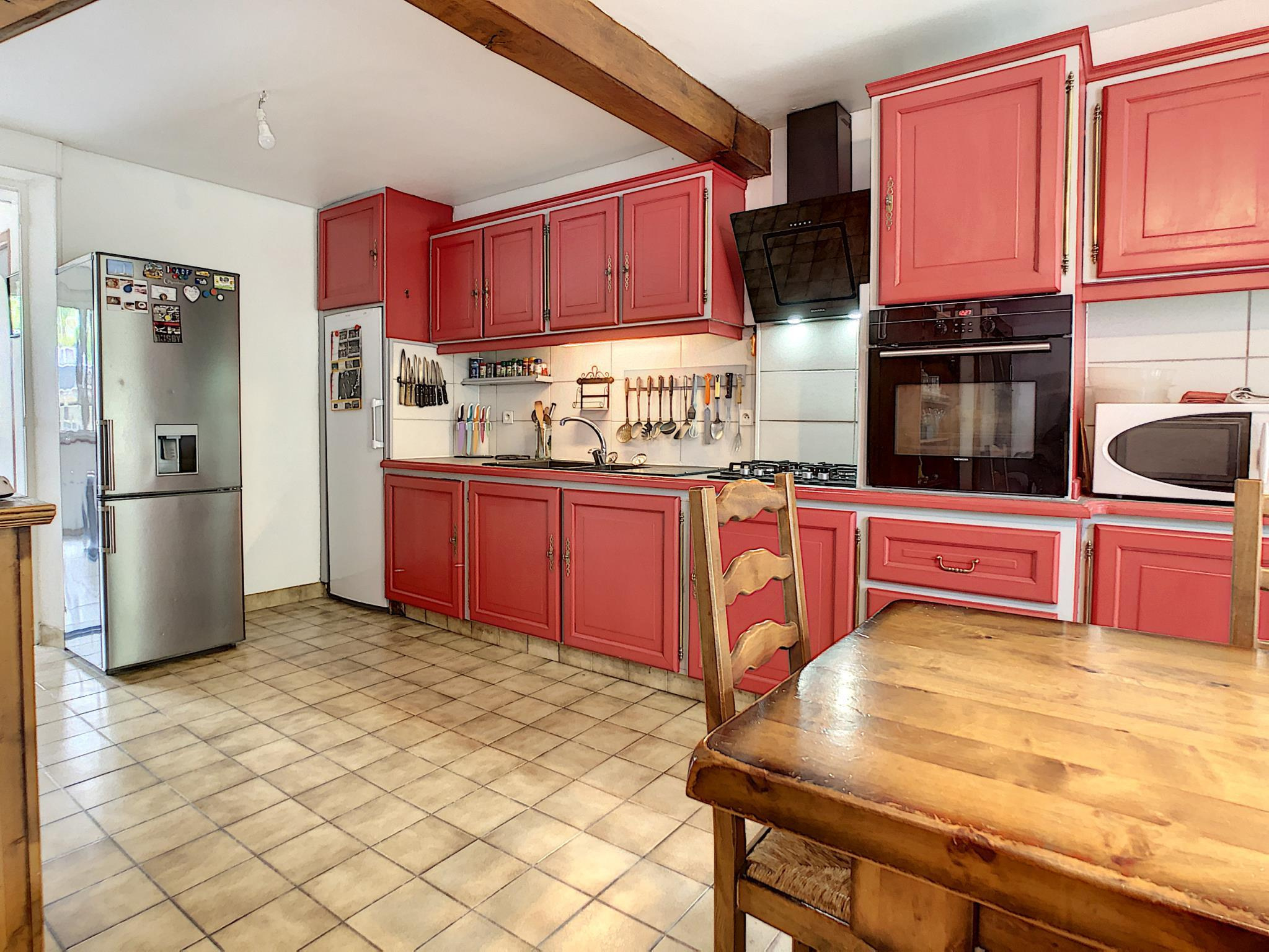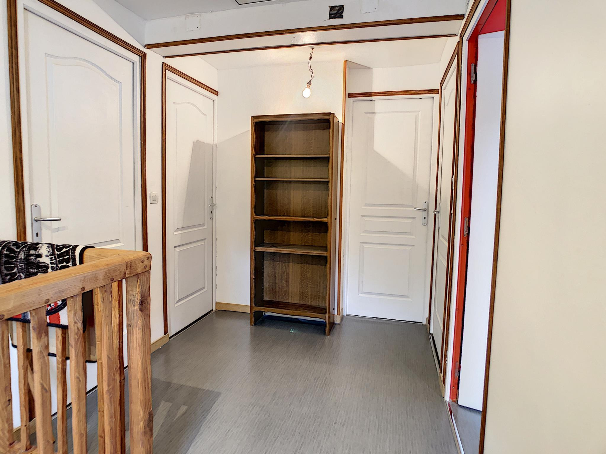Maison de ville comprenant entrée, salon séjour avec poêle à granules, cuisine aménagée équipée, pièce de passage, salle d'eau, toilettes, à l'étage : palier desservant quatre chambres, salle de bains avec toilettes, grenier au-dessus, en annexe: cour sur l'arrière avec chalet, cave, le tout sur une parcelle de 193 m² environ.