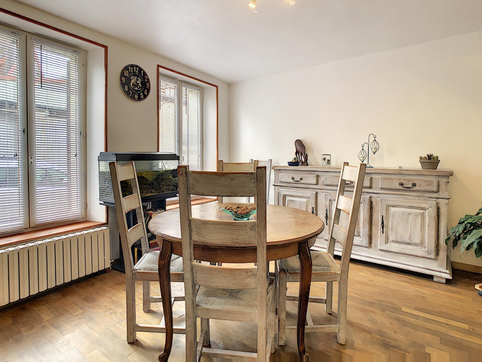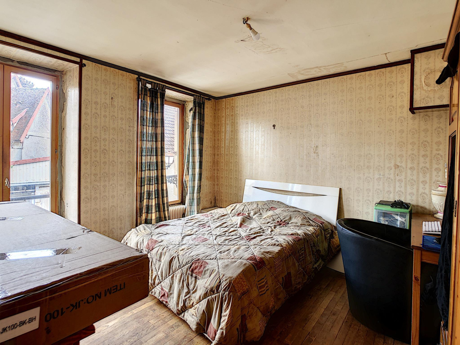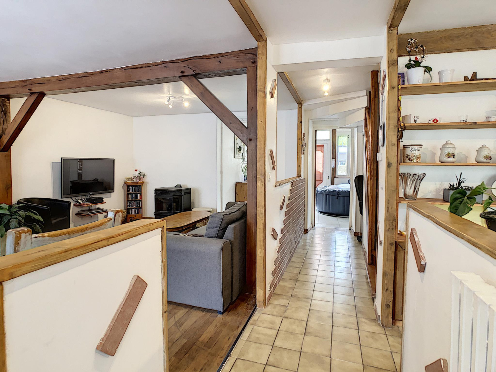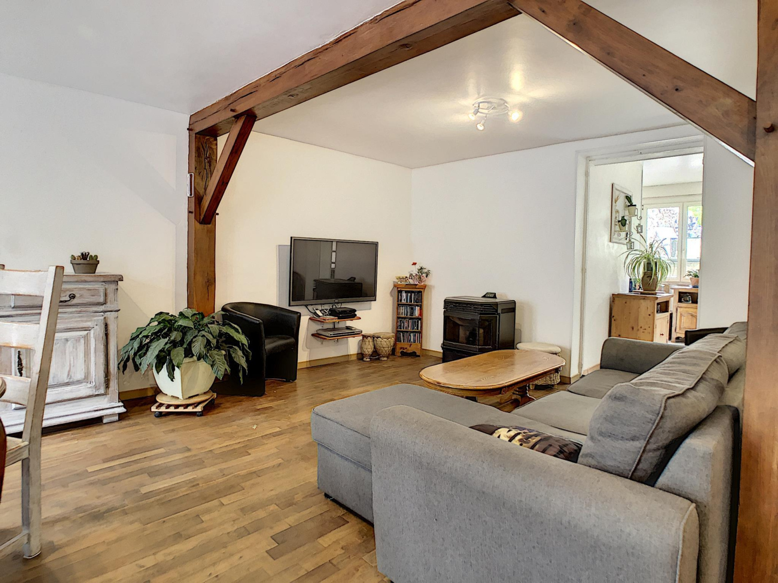 Maison de ville comprenant entrée, salon séjour avec poêle à granules, cuisine aménagée équipée, pièce de passage, salle d'eau, toilettes, à l'étage : palier desservant quatre chambres, salle de bains avec toilettes, grenier au-dessus, en annexe: cour sur l'arrière avec chalet, cave, le tout sur une parcelle de 193 m² environ.