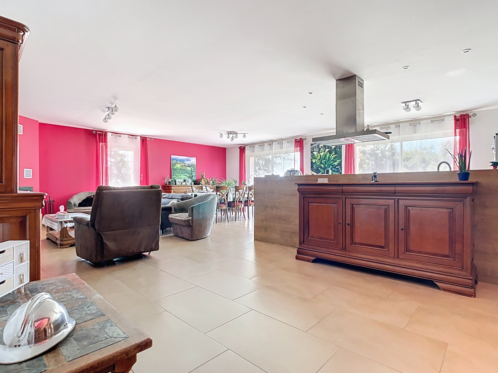 Prestations: Pavillon briques creuses 370 mm de 2013, RT 2012, VMC double flux, chauffage par radiateurs électrique et cheminée insert, double exposition EST-OUEST, vue dégagée sur la vallée, toutes commodités à pied.