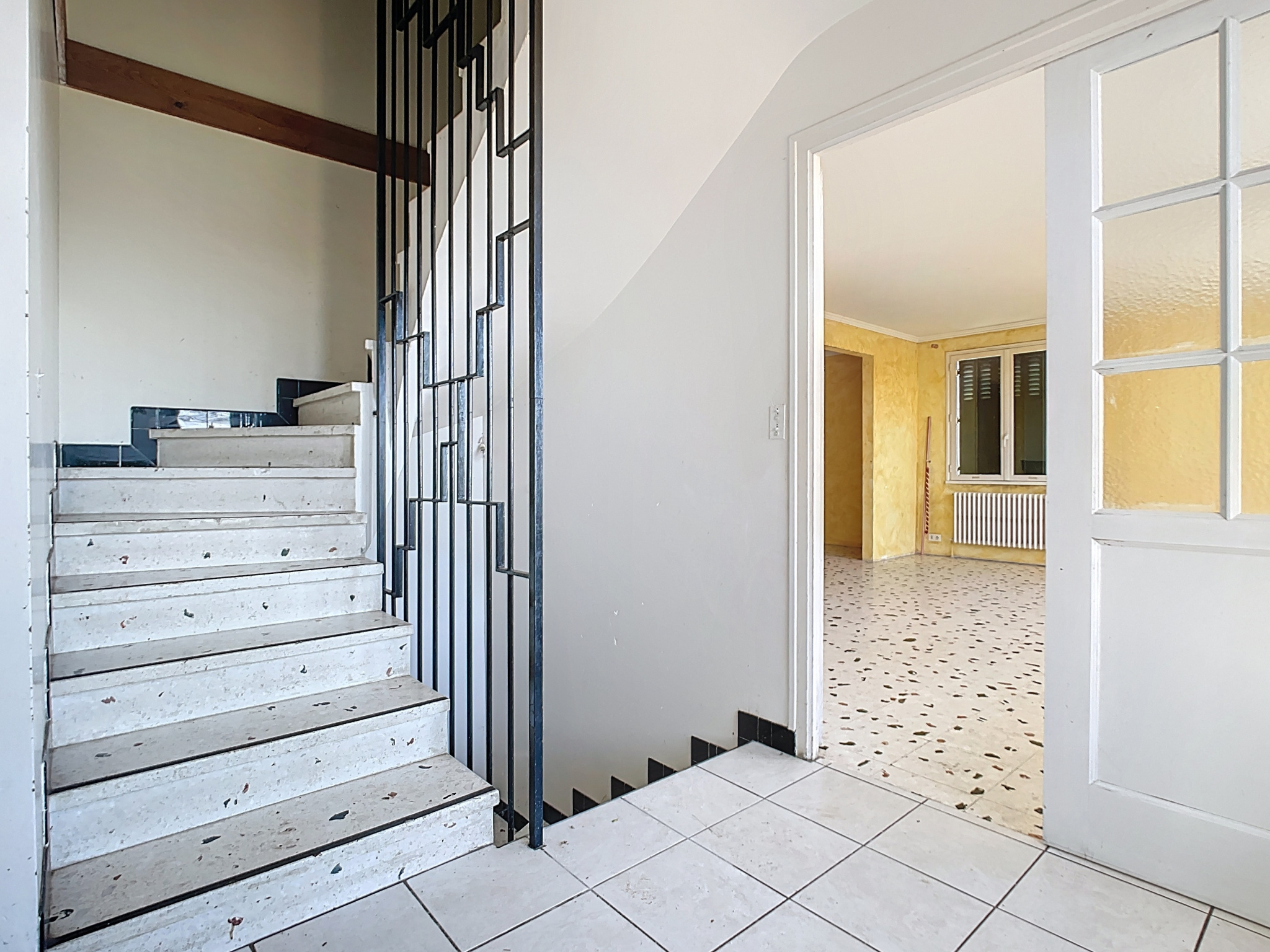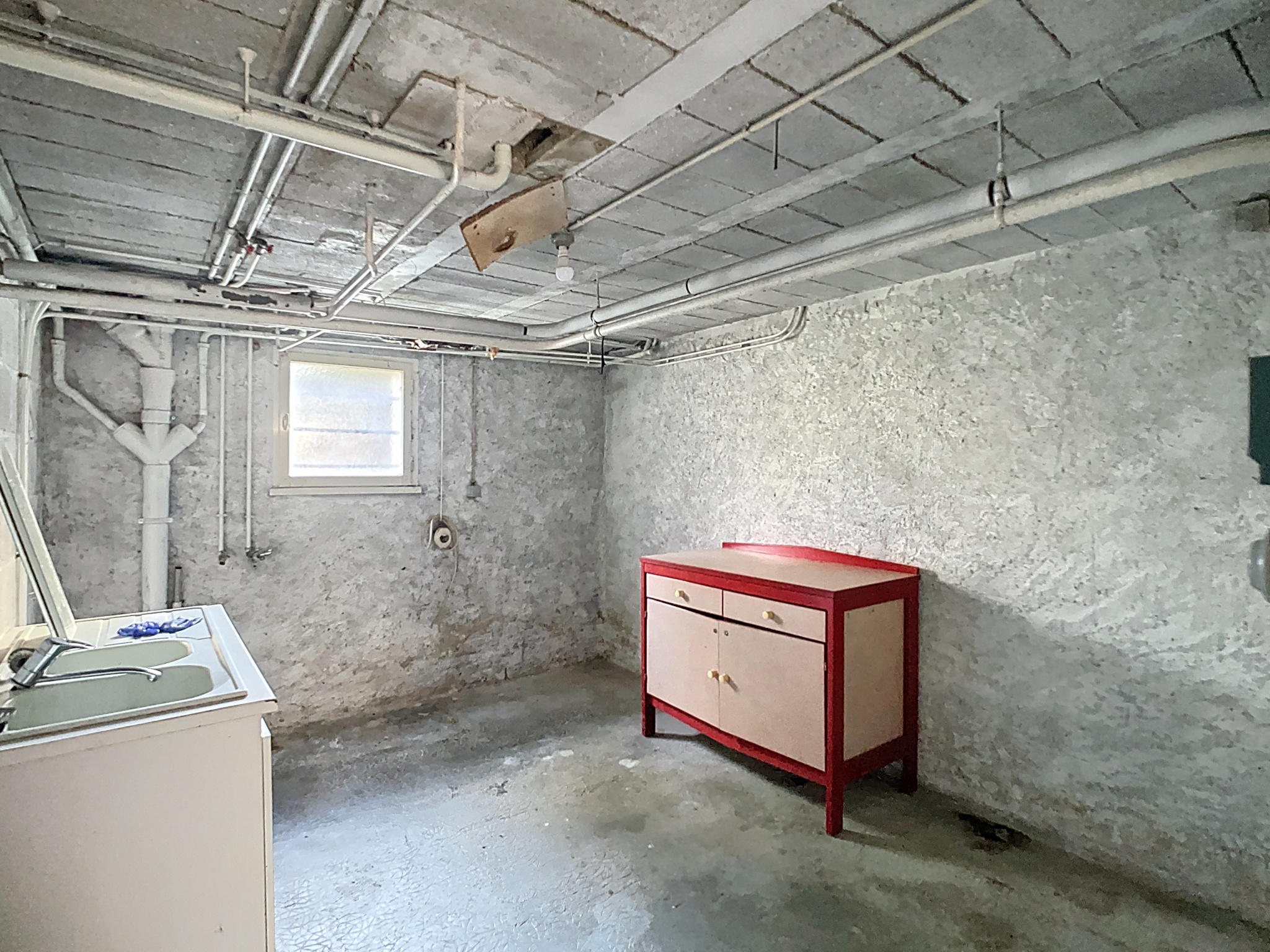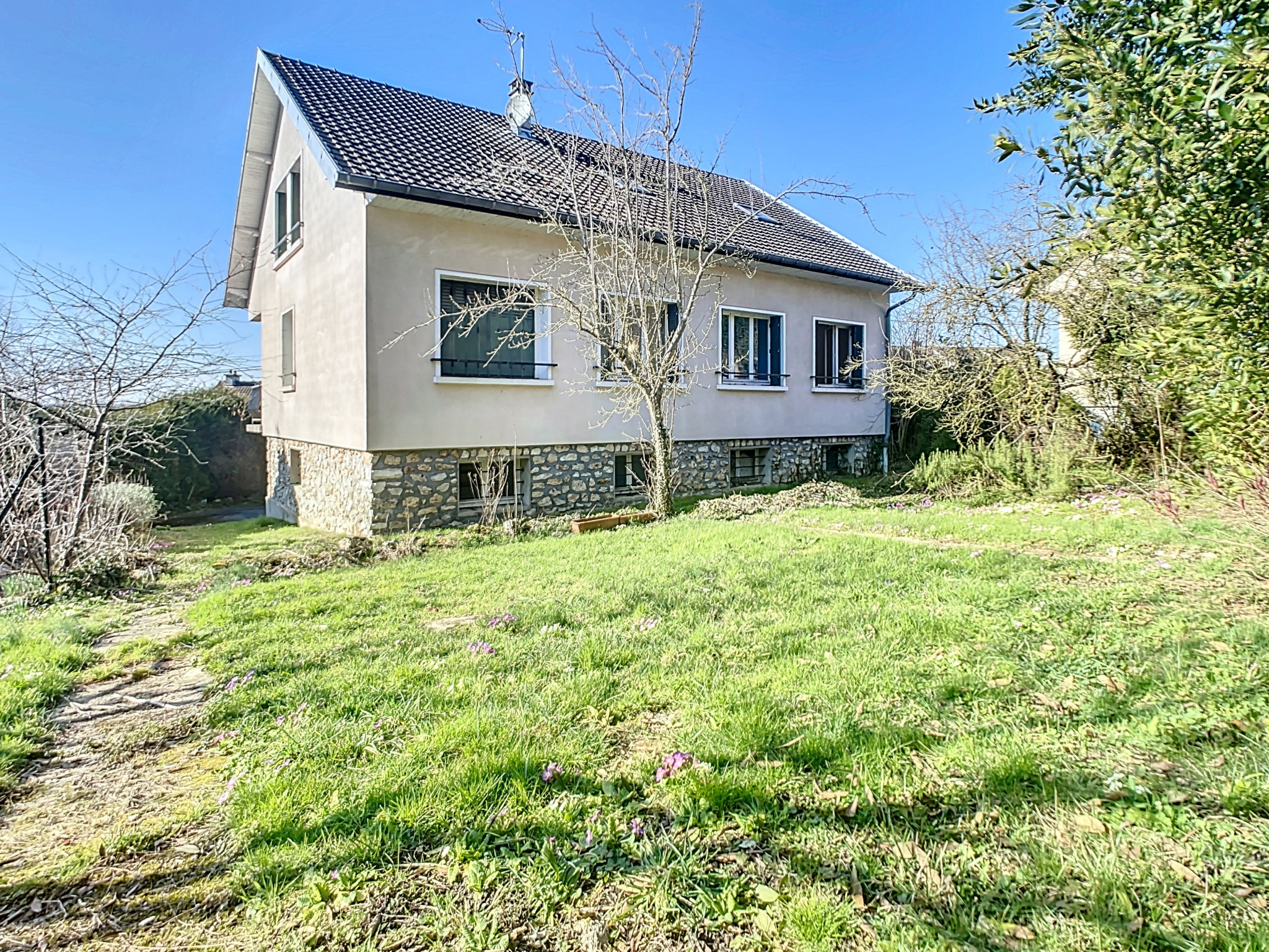 A proximité du centre-ville, quartier calme, pavillon sur sous-sol total comprenant en R+1 entrée, cuisine aménagée équipée, salon séjour avec cheminée insert avec accès terrasse-balcon, couloir desservant trois chambres, salle d'eau, toilettes, au second : palier permettant la distribution de quatre chambres, salle de bains avec toilettes. Le tout sur un sous-sol total compartimenté : hall d'entrée, garage 2 VL, cellier, buanderie, chaufferie, et un terrain clos de grillage et murs de 710 m² environ.